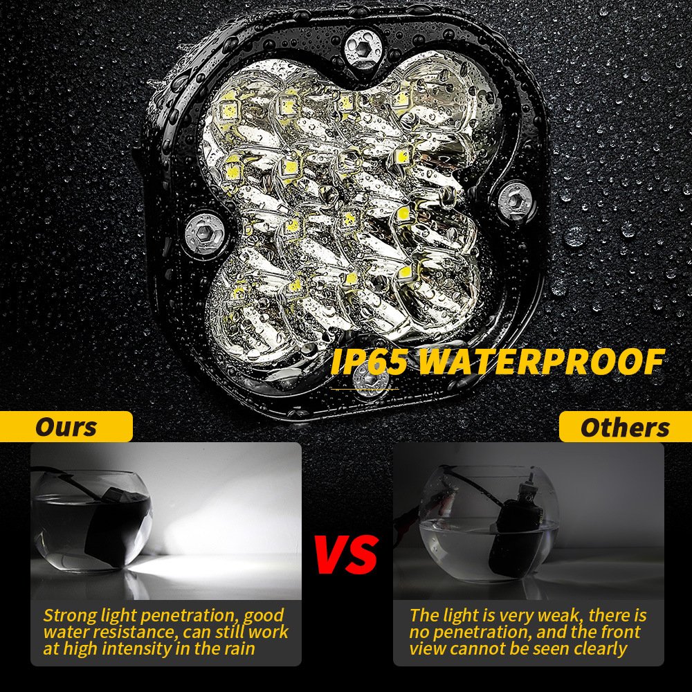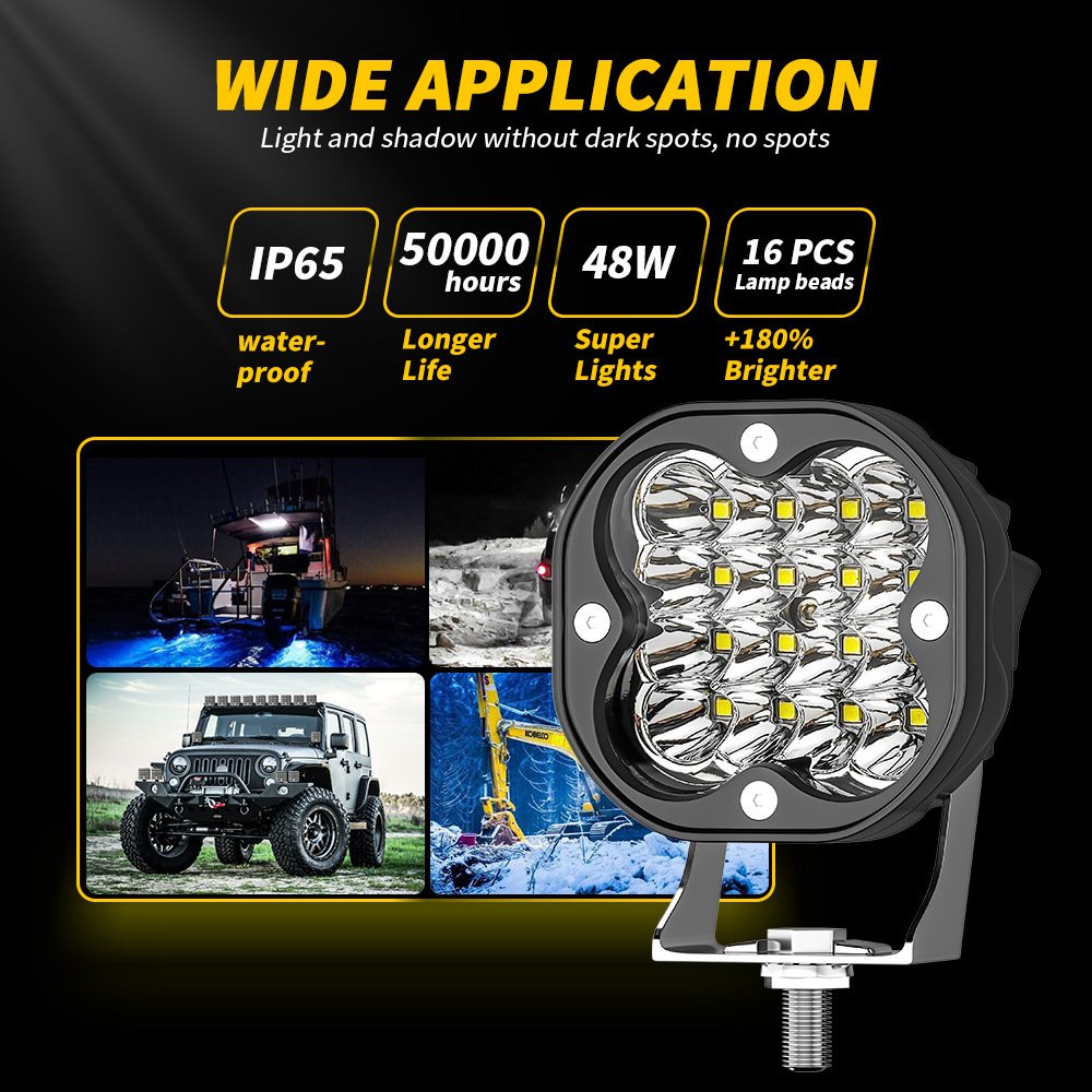 Tenraytech 3-Inch Mini Square Automotive LED Work Light – A-Pillar Driving Light, Pod Light & Off-Road Spotlight Kit
