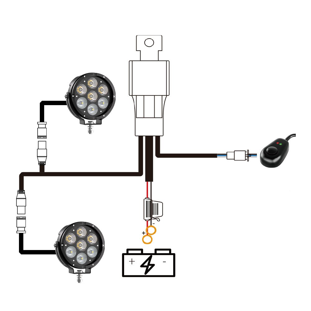 Tenraytech 100W 7-Bead Motorcycle LED Spotlight Retrofit Kit, External High-Brightness LED Driving Light with Wiring Harness for Road Surface Illumination