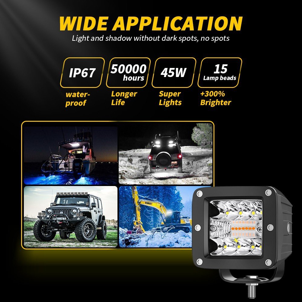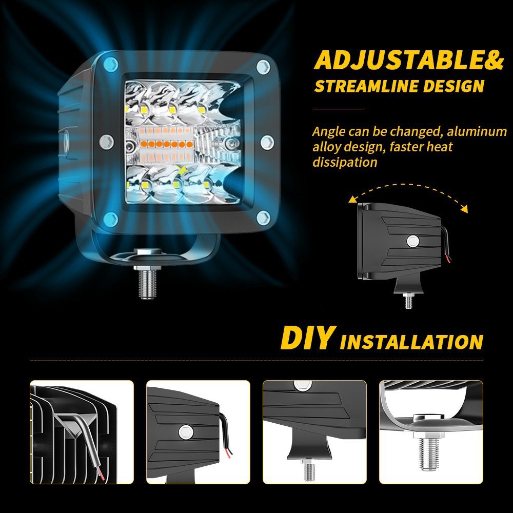 Tenraytech 3-Inch LED Work Light Kit – White & Amber 6 Modes Off-Road Driving Light A-Pillar Mini Pod Light for Truck SUV Jeep