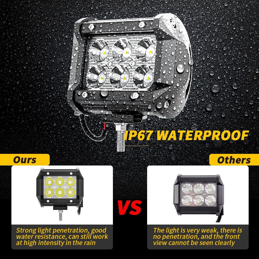 Tenraytech 4-Inch LED Light Bar 6LED 18W – Off-Road Driving Light with Wiring Harness Kit
