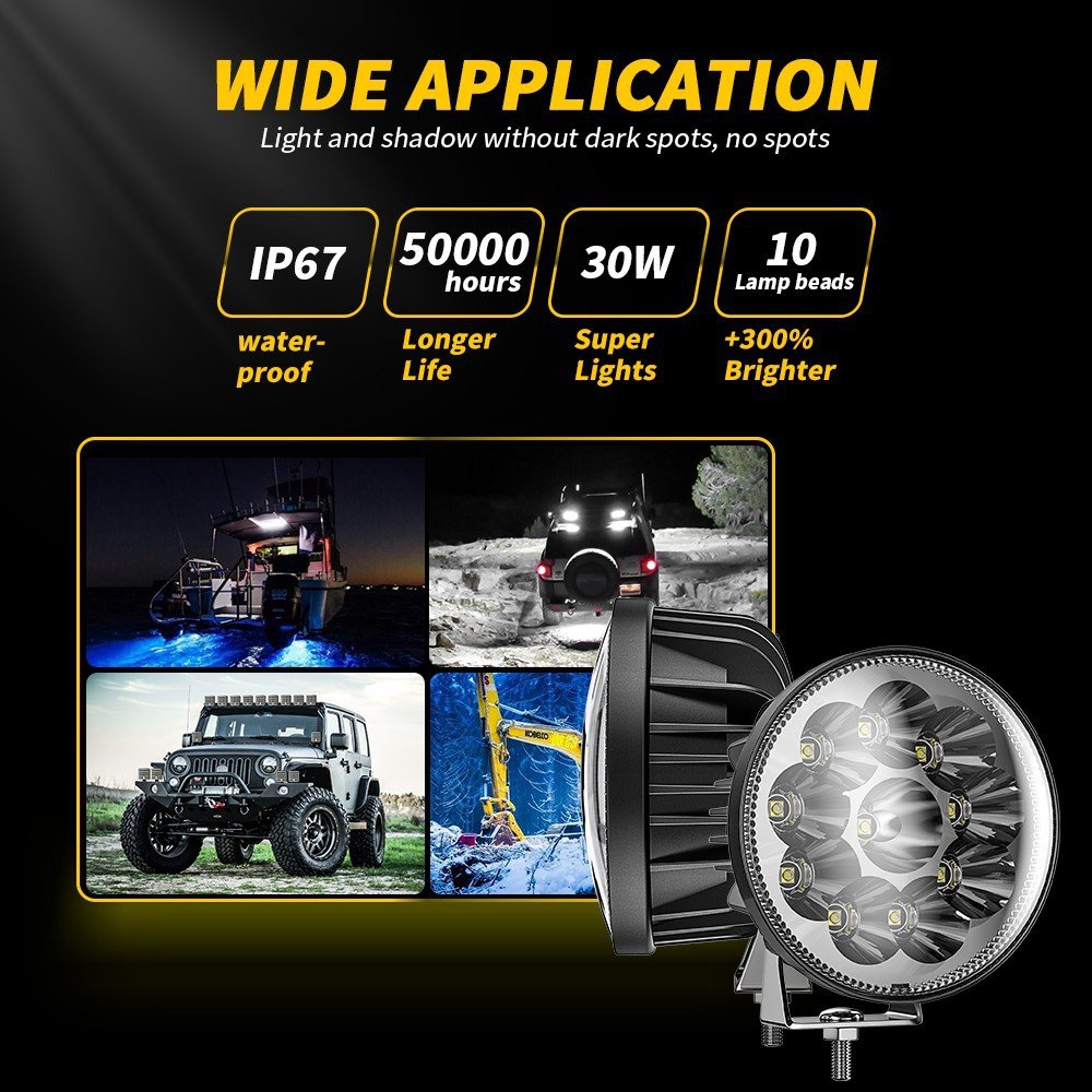 Tenraytech 4-Inch Round LED Work Light – Spot Beam Driving Light 9-30V with Wiring Harness Off-Road Spotlight Kit