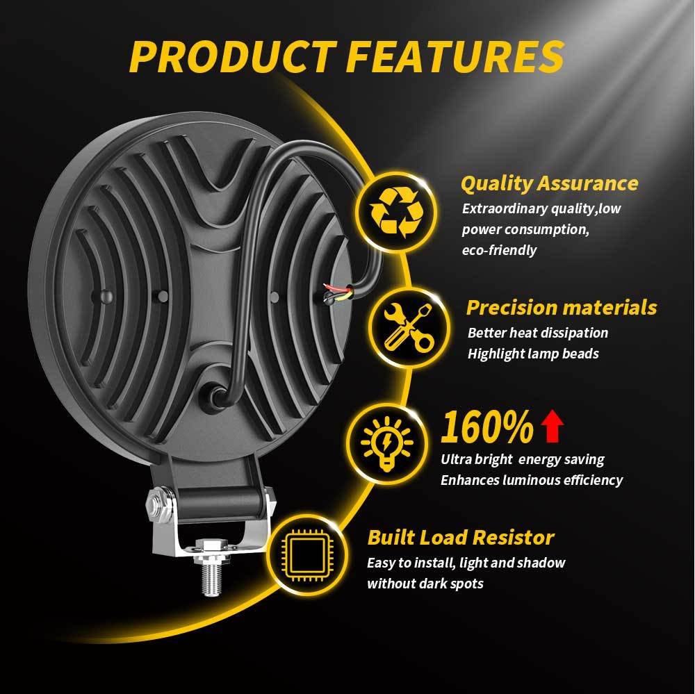 Tenraytech 4 Inch Round Wide View DRL LED Work Light, Daytime Running Driving Light Off Road Auxiliary Lamp