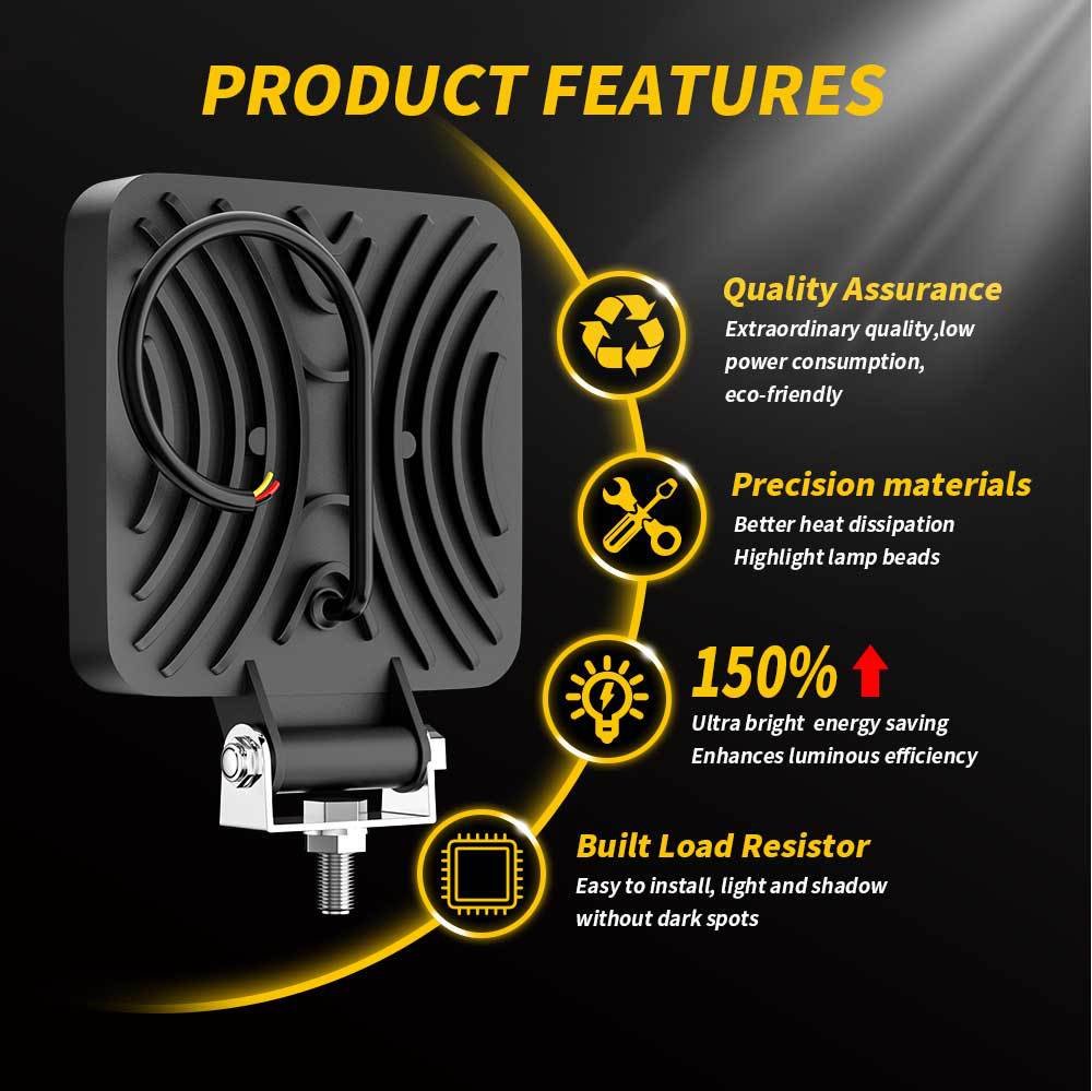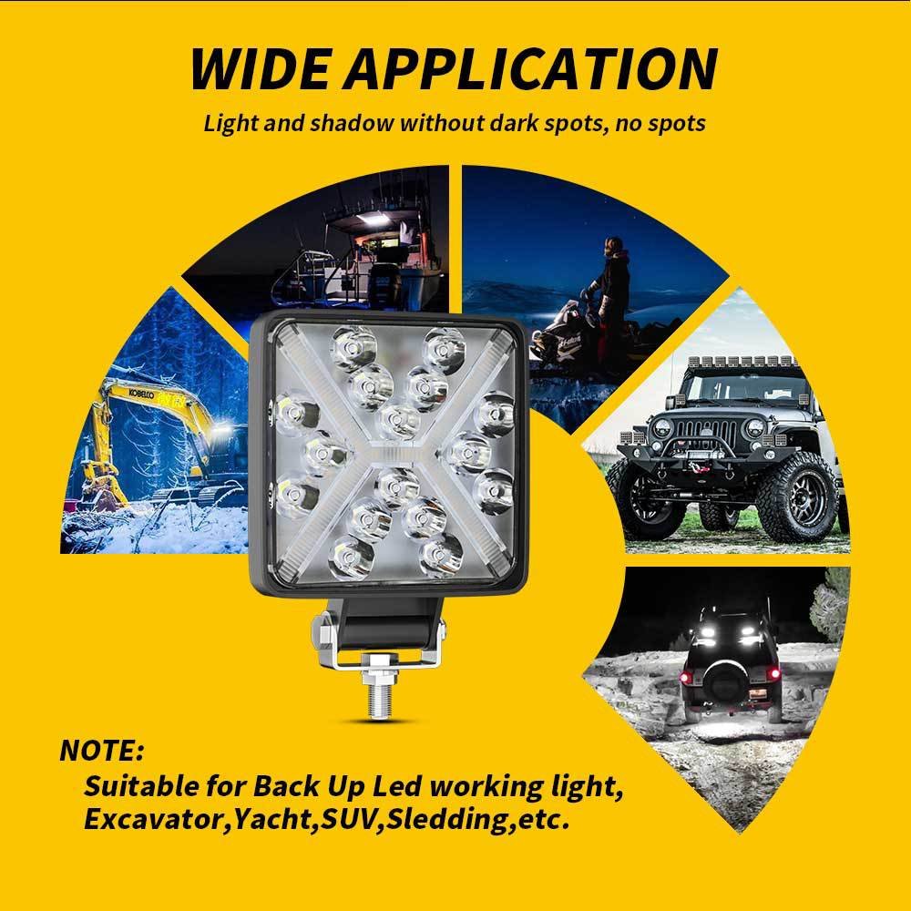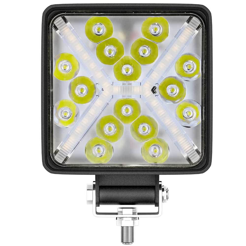 Tenraytech 4-Inch Square 16LED LED Driving Light, DRL Angel Eye X-Shaped Halo Modified Lamp for Cars, Agricultural Machinery, Engineering Vehicles & Forklifts