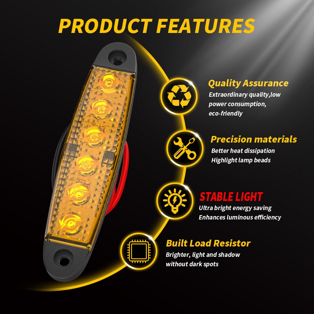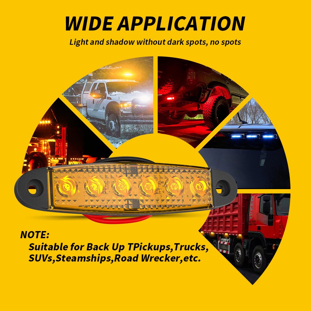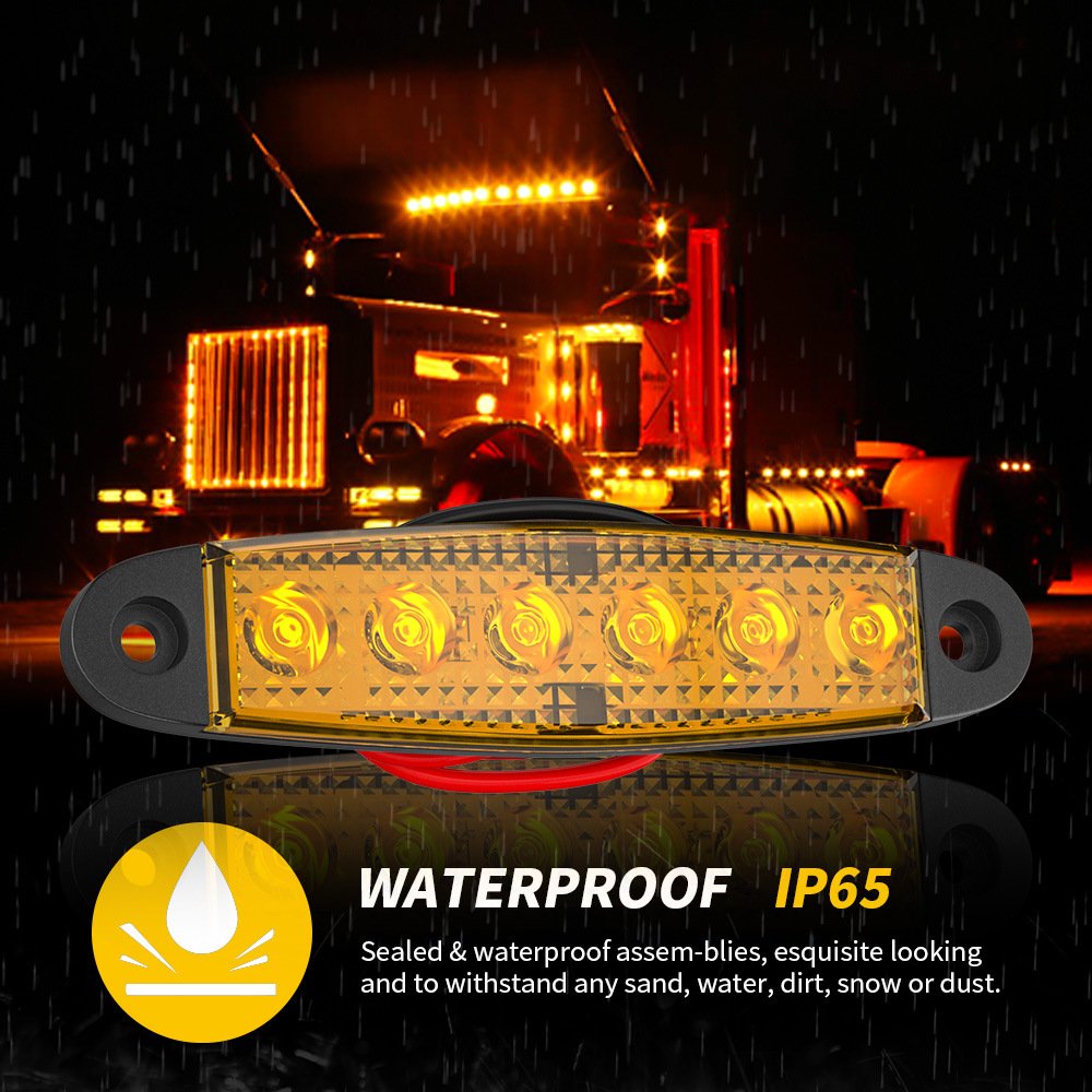 Tenraytech 6-LED Strip Side Light 12V 24V, Warning Signal Light for Trucks, Lorries & Ships, Car Amber Light