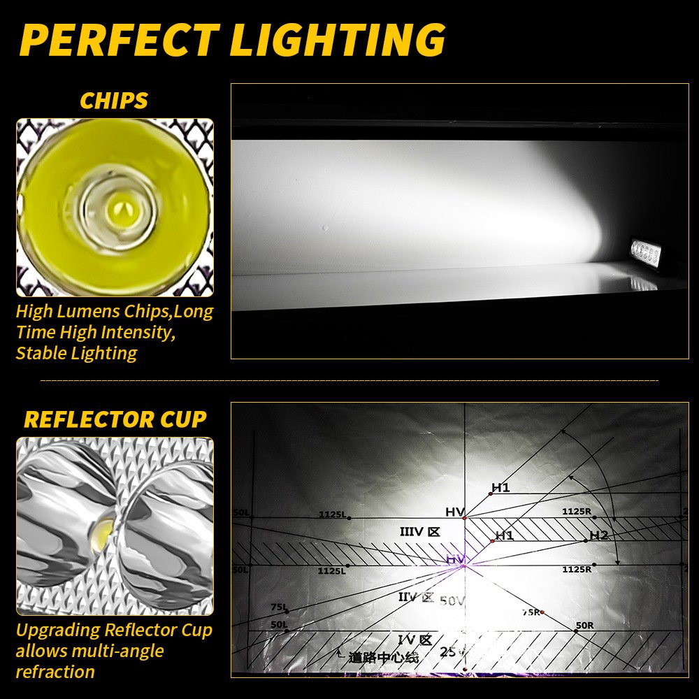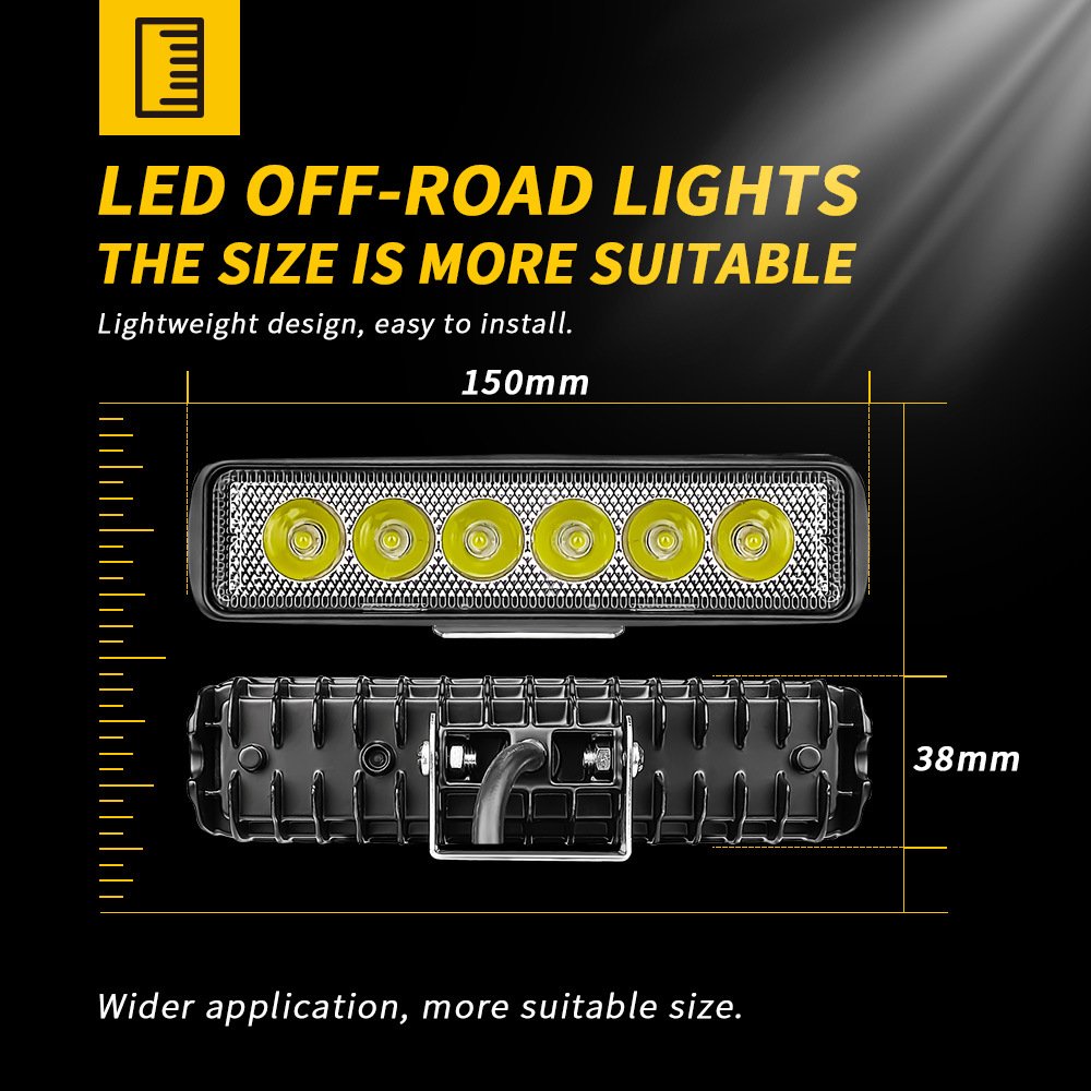 Tenraytech 6-Inch Linear 6-LED 18W LED Work Light, Spot Light Reversing Lamp for Excavators Engineering Vehicles Automotive