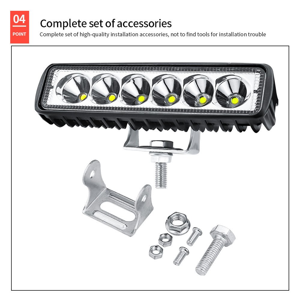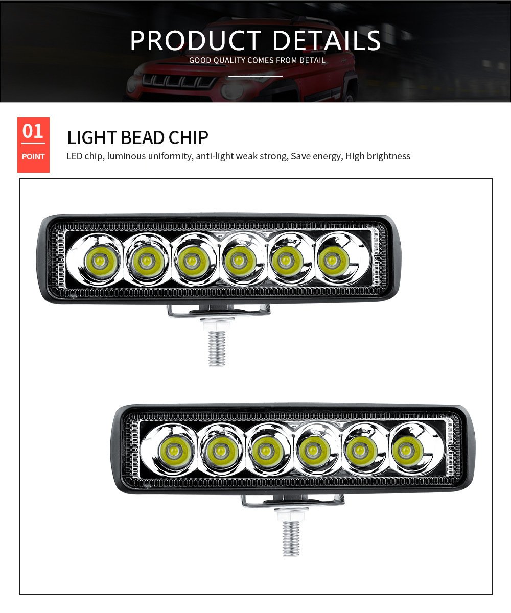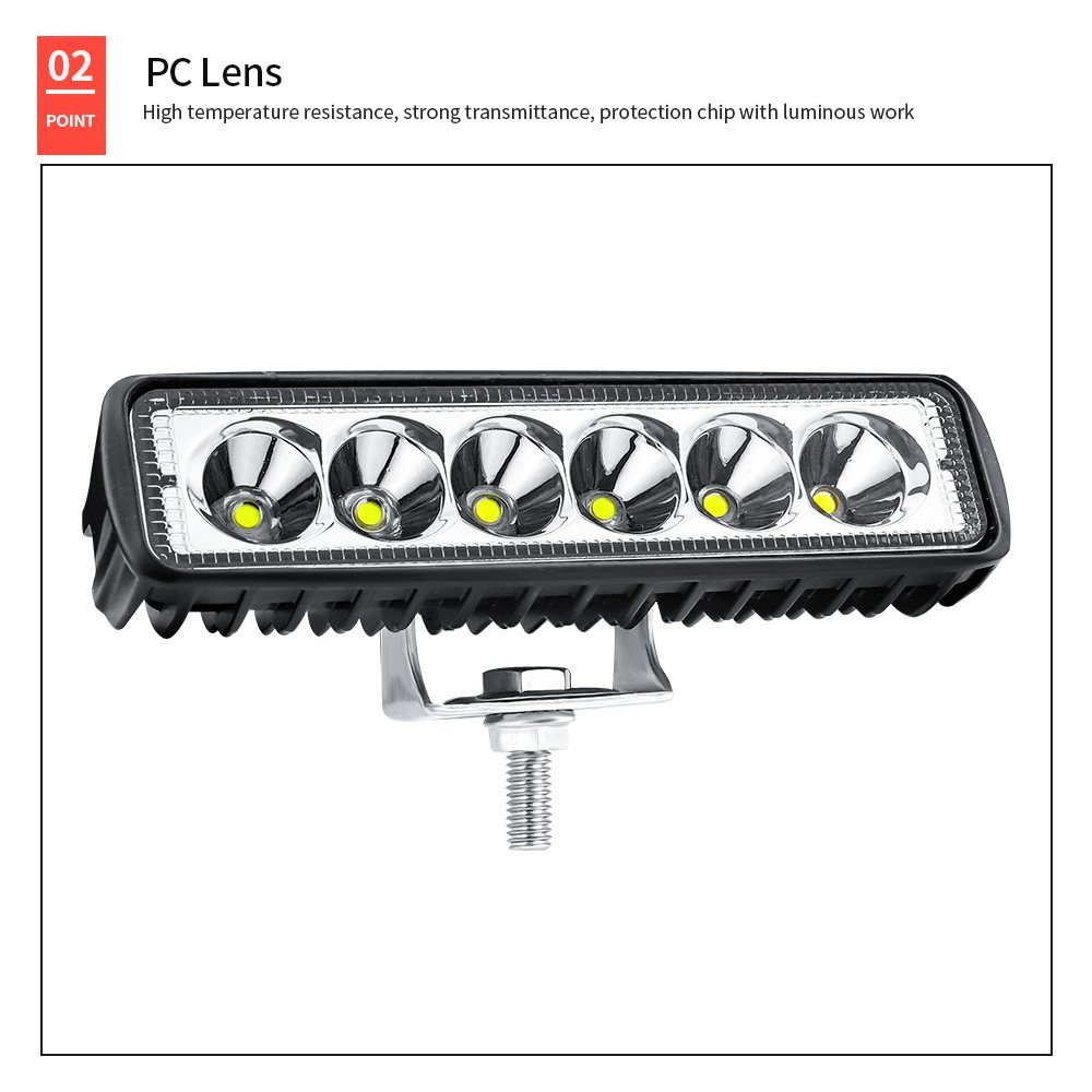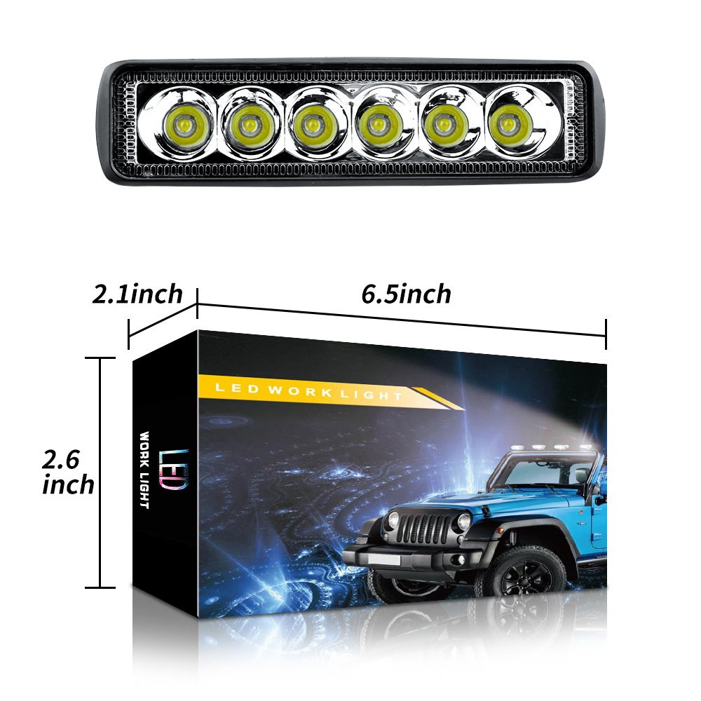 Tenraytech 6-Inch Straight 6-LED 18W Work Light, Off-road Modification Engineering Spot Light DRL Fog Light