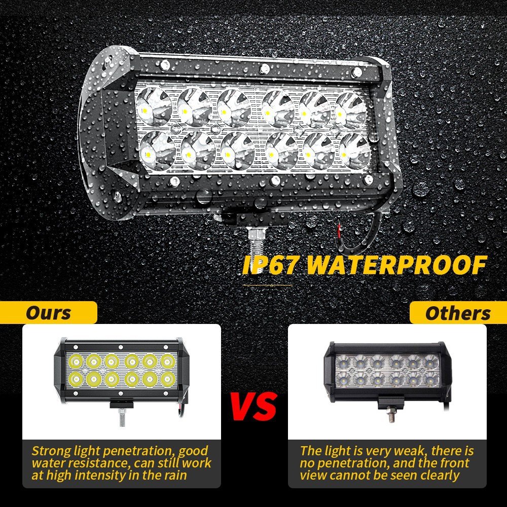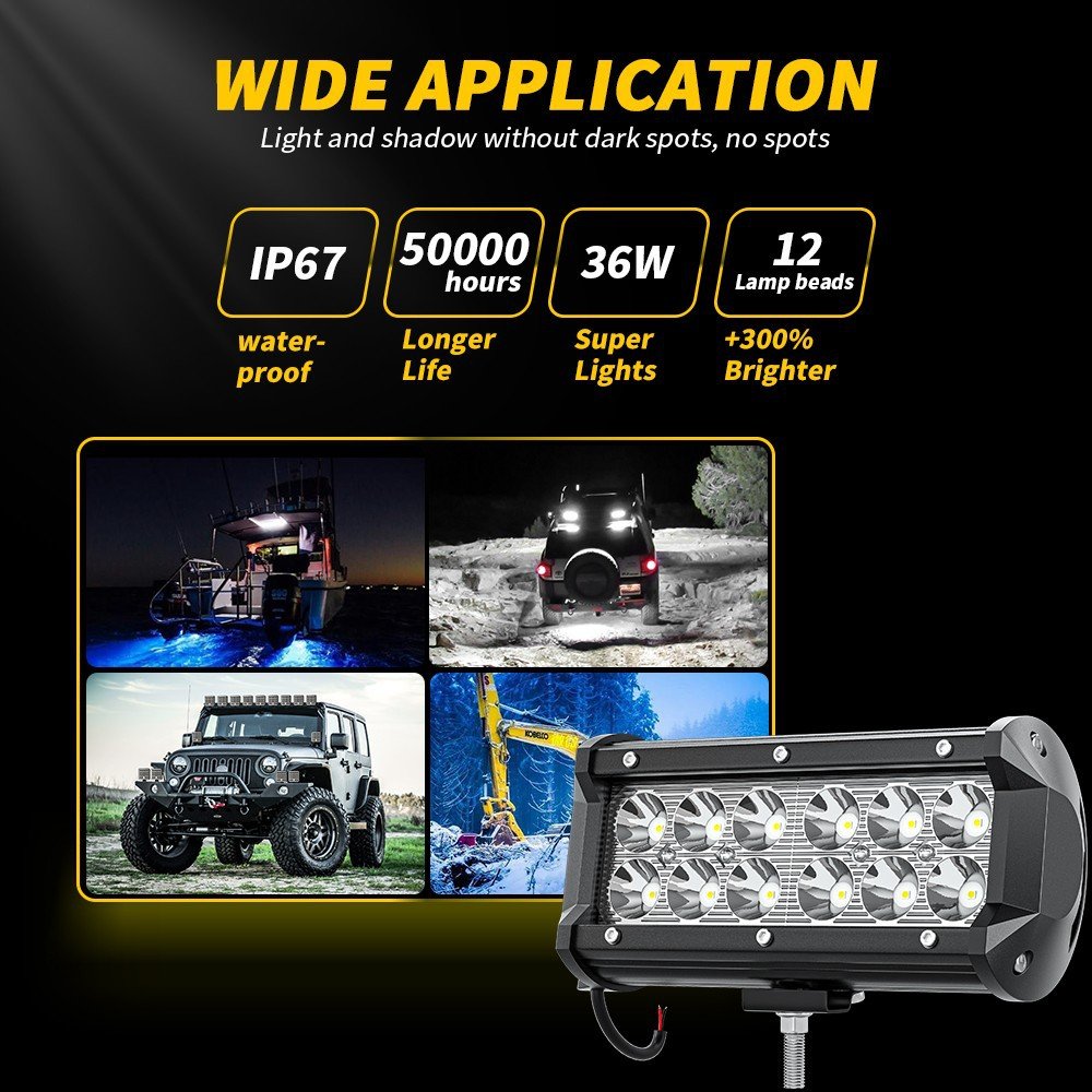 Tenraytech 7-Inch 36W LED Work Light Kit – Spot Beam A-Pillar Light & Control Wiring Harness for Off-Road Cars