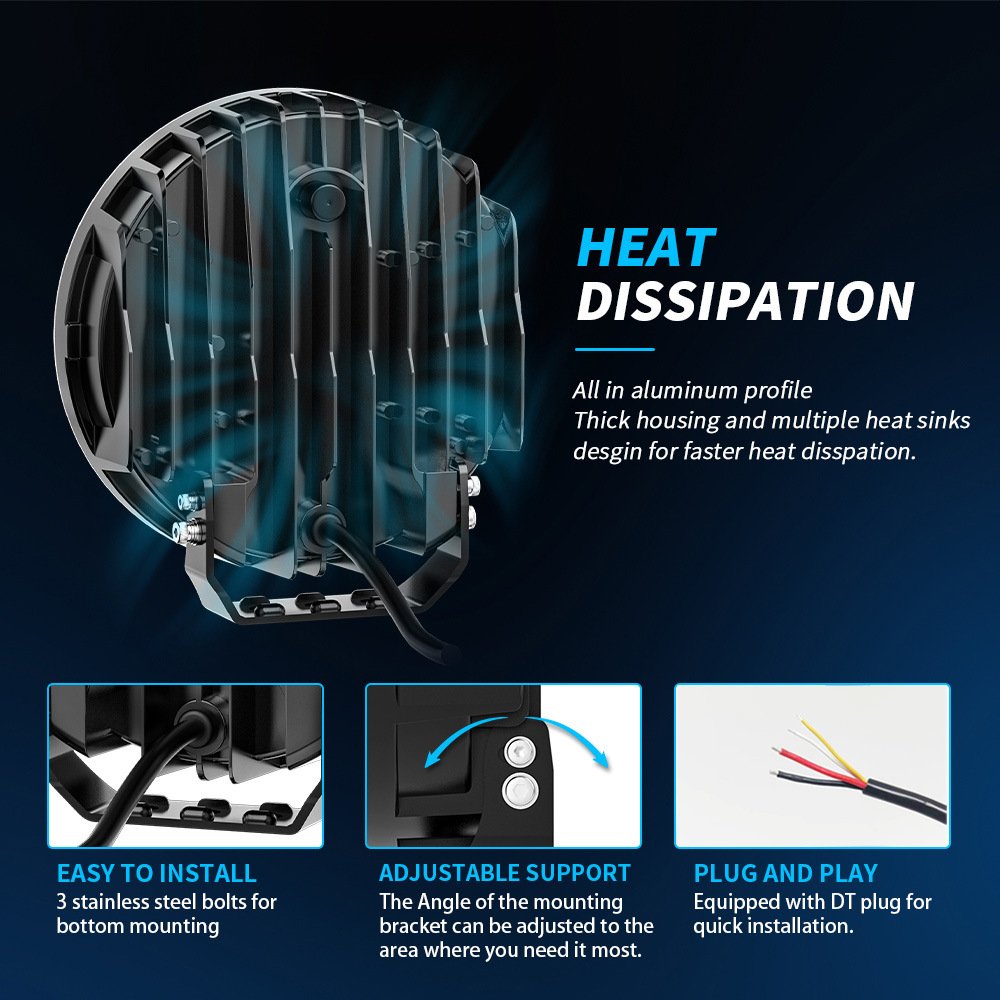 Tenraytech 9C02 European Truck Spotlight – High Power 9inch Work Light, Modified Truck Searchlight & Driving Headlight
