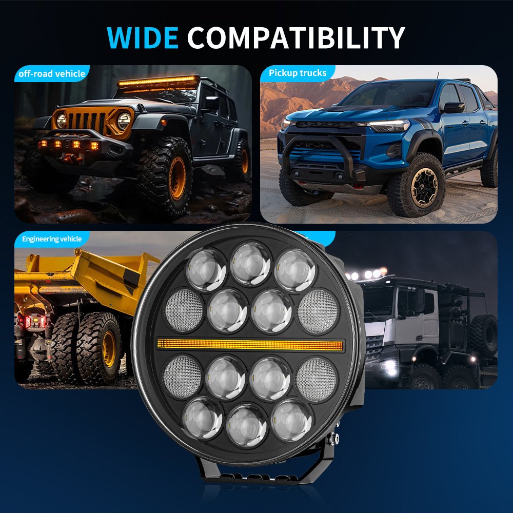 Tenraytech 9R01 European Truck Spotlight – 9-Inch Round LED Work Light, Driving Headlight & Searchlight for Trucks, Lorries & Off-Road Vehicles