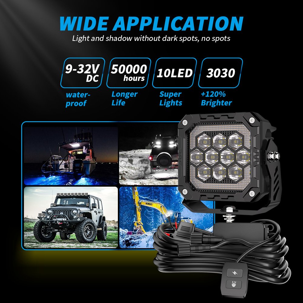 Tenraytech Black Warrior BF4-10Pro LED Upgrade Lighting Kit – Dual Off-Road Lamps with Wiring Harness for SUV & Jeep Wrangler