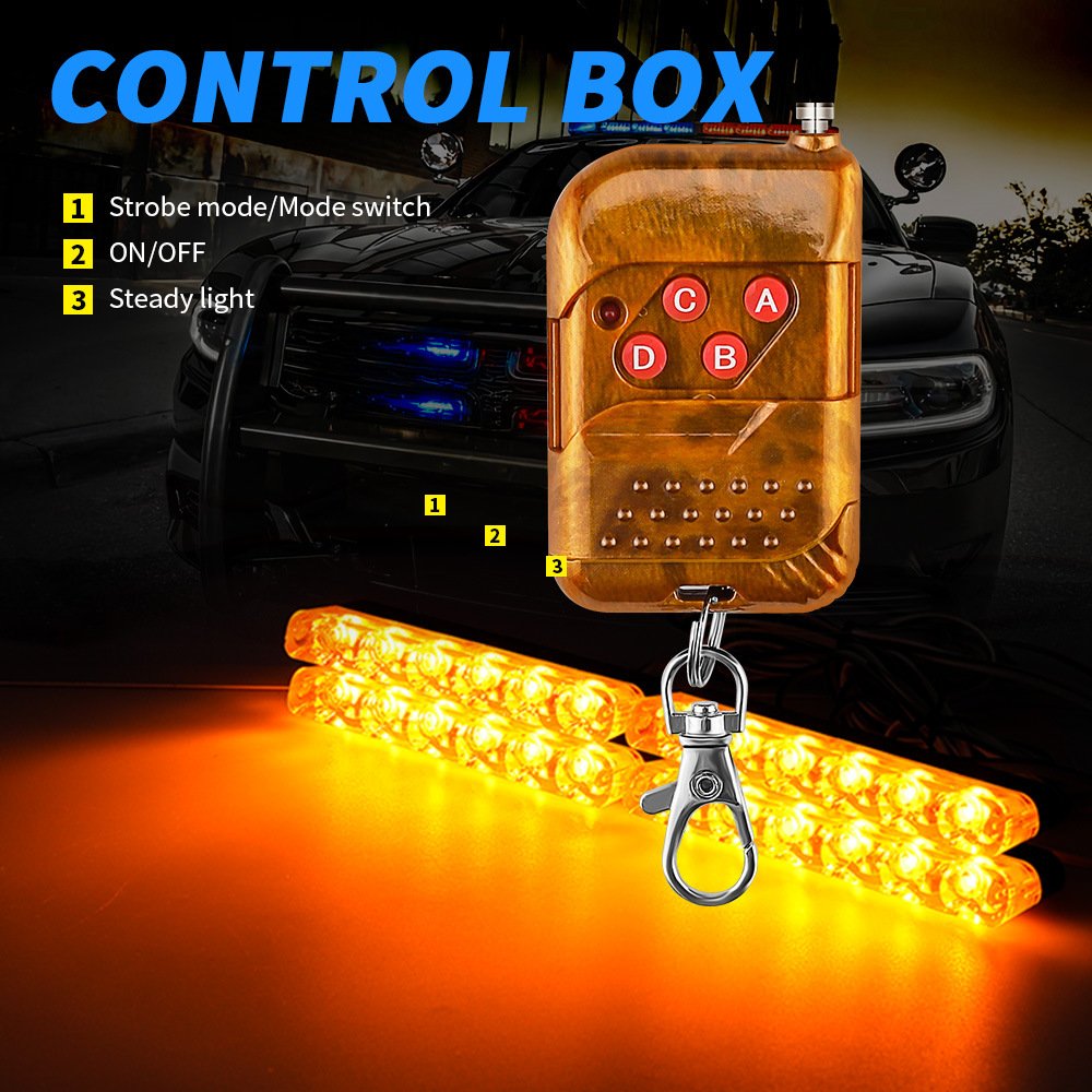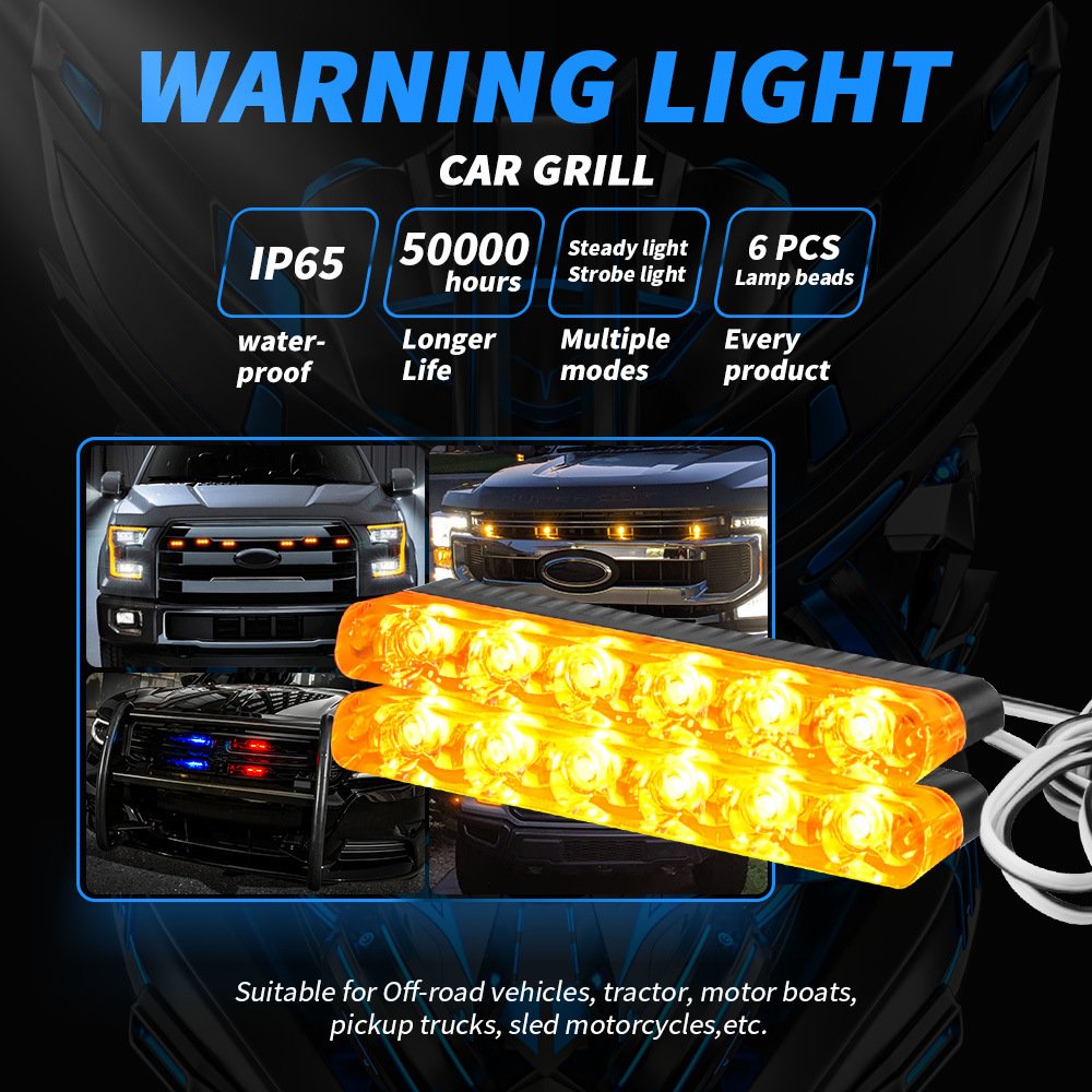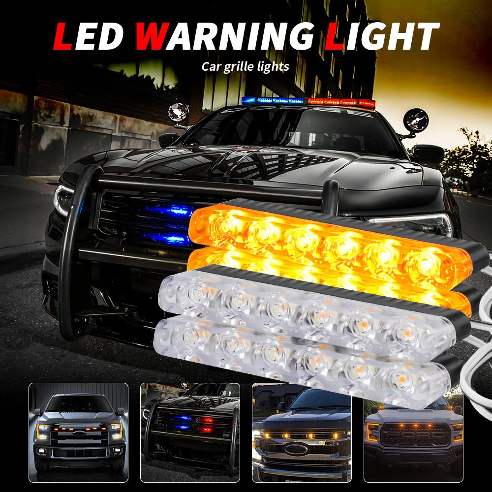 Tenraytech Car Grille Amber Light, Modified Daytime Running Light, 1 to 4 6LED Wireless Remote Control Strobe Warning Light