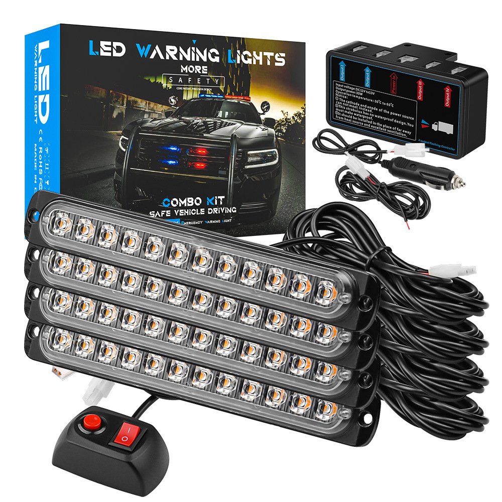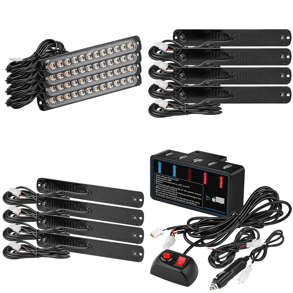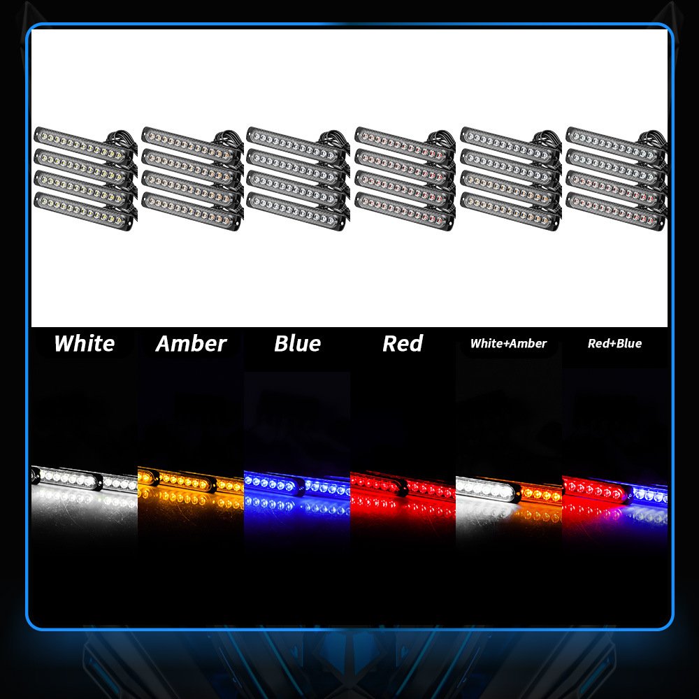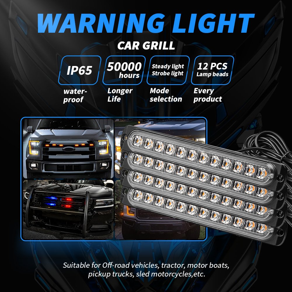 Tenraytech 1-to-4 Car Grille Strobe Light 12LED×4pcs, Ultra – Slim Red – Blue Warning Light Daytime Running Light Exterior Strobe Light