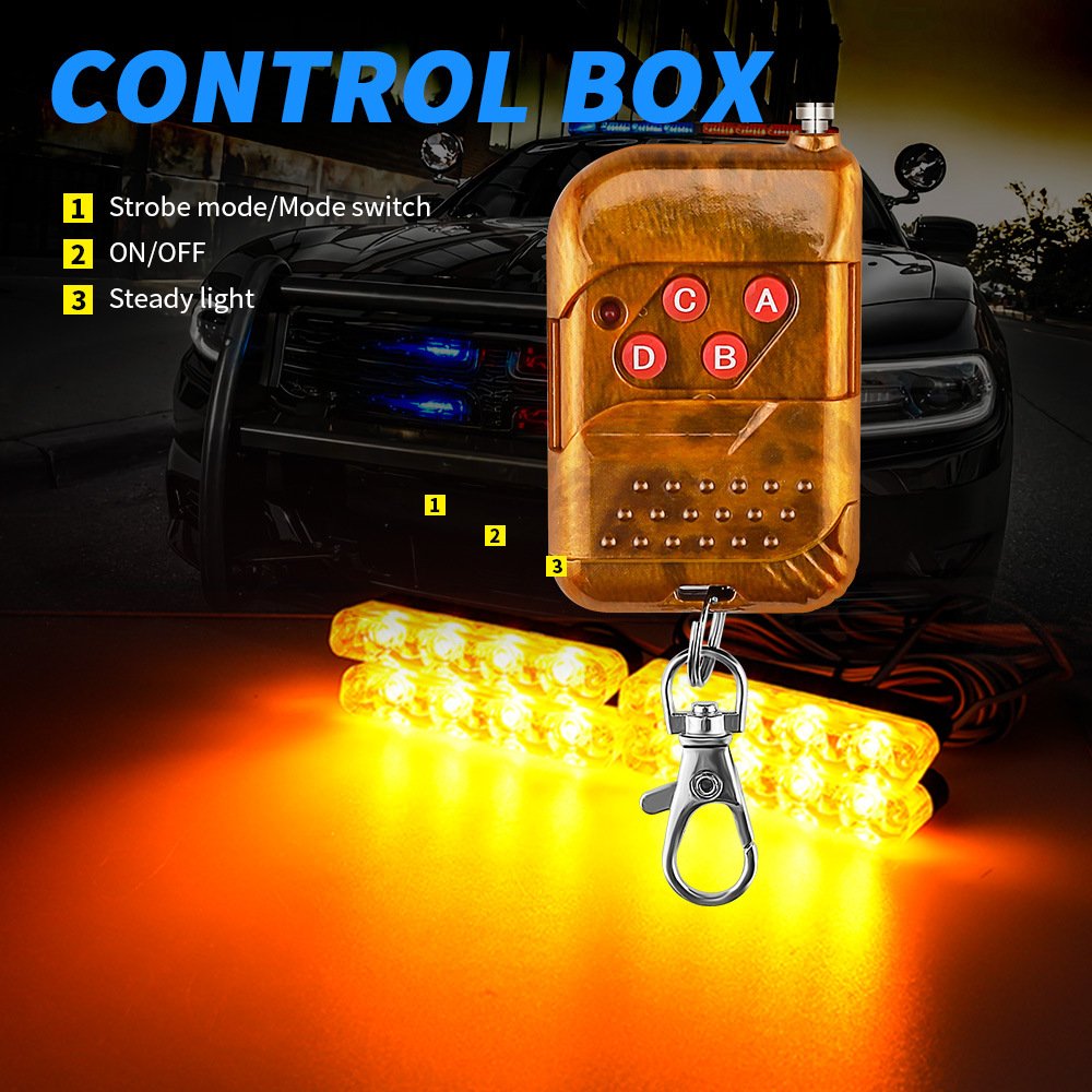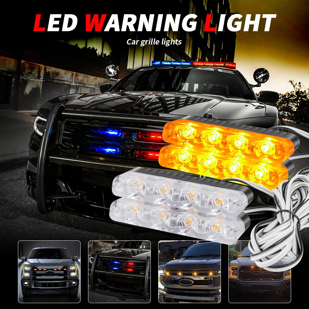 Tenraytech Car Grille Strobe Light with Wireless Remote Control, 4pcs 1 to 4 LED Warning Light, Grille Clip Light, 4×4LED