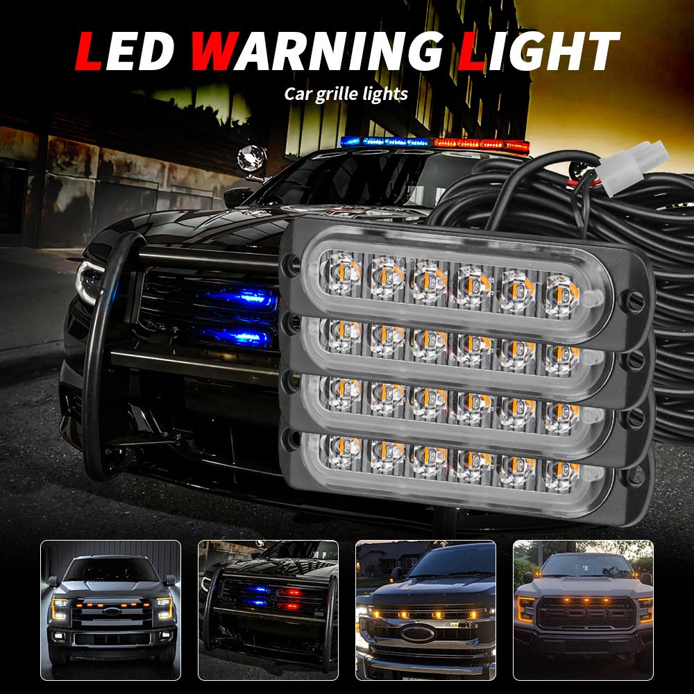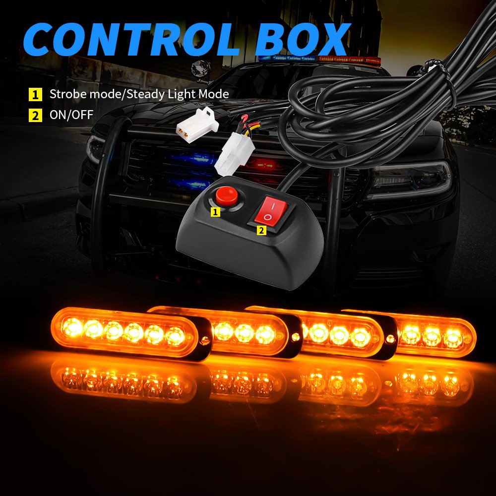 Tenraytech Car Red & Blue Grille Strobe Light Manual Control, 12V-24V 1-to-4 High Brightness High Power Undercarriage & Ambient Light