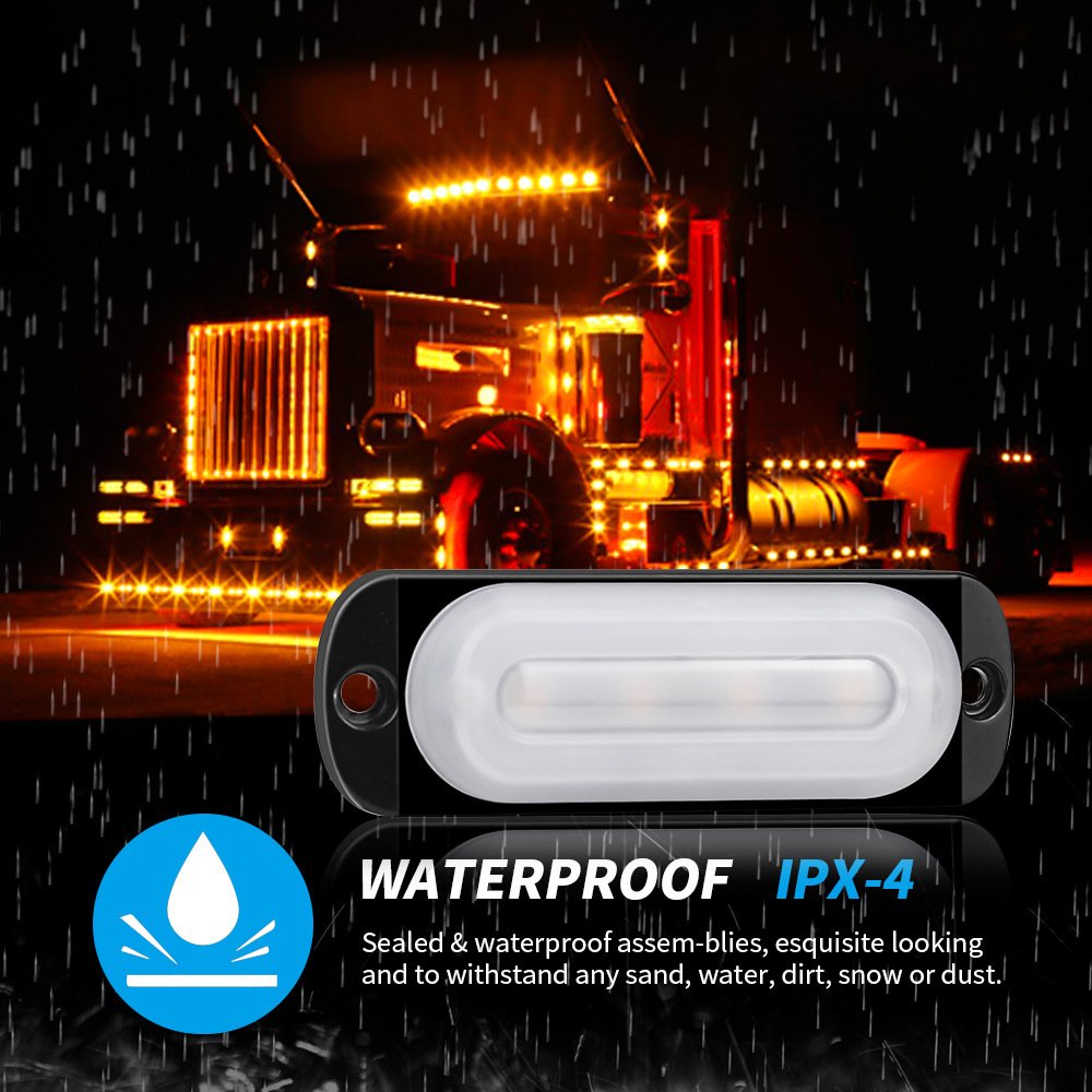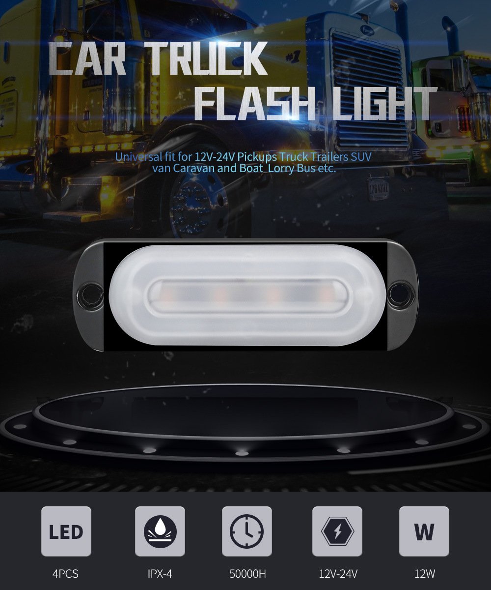 Tenraytech Car Side Marker Warning Light 12-24V, Light Guide 4-LED Truck Flashing Light, Ultra-thin Strobe Light