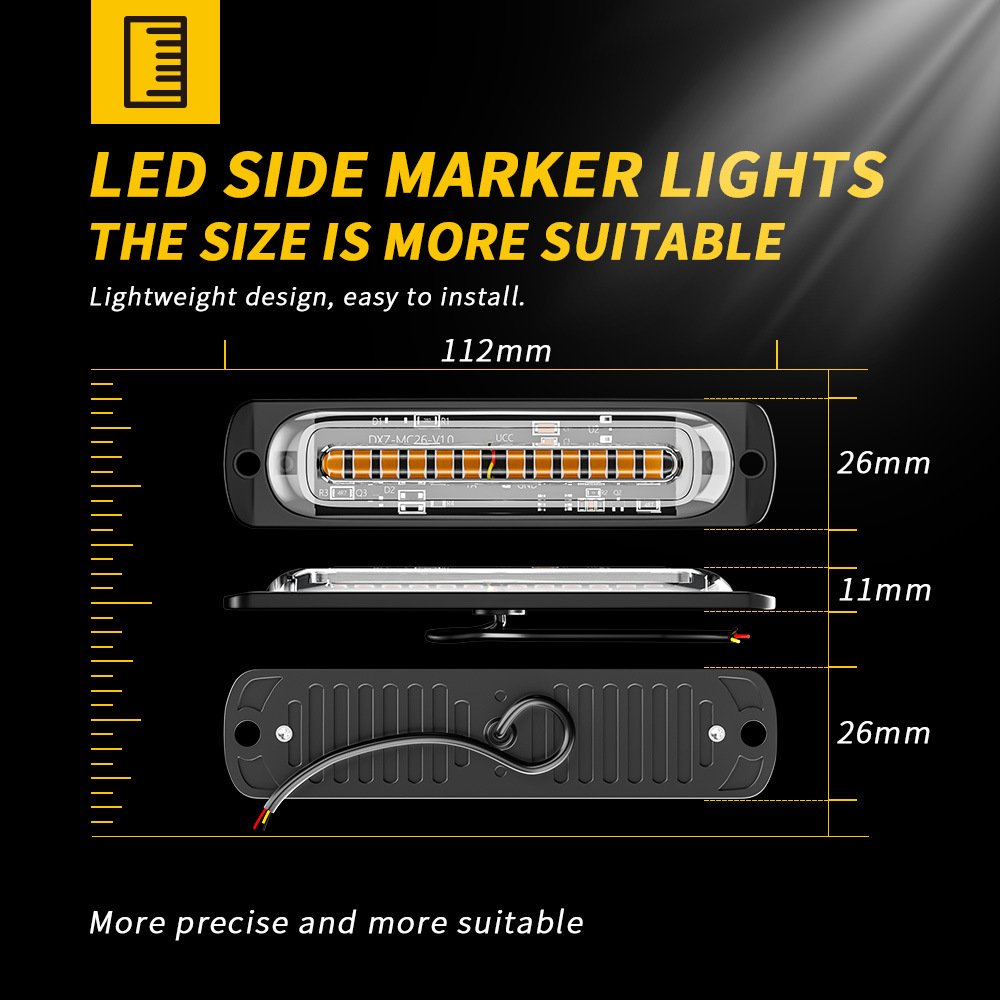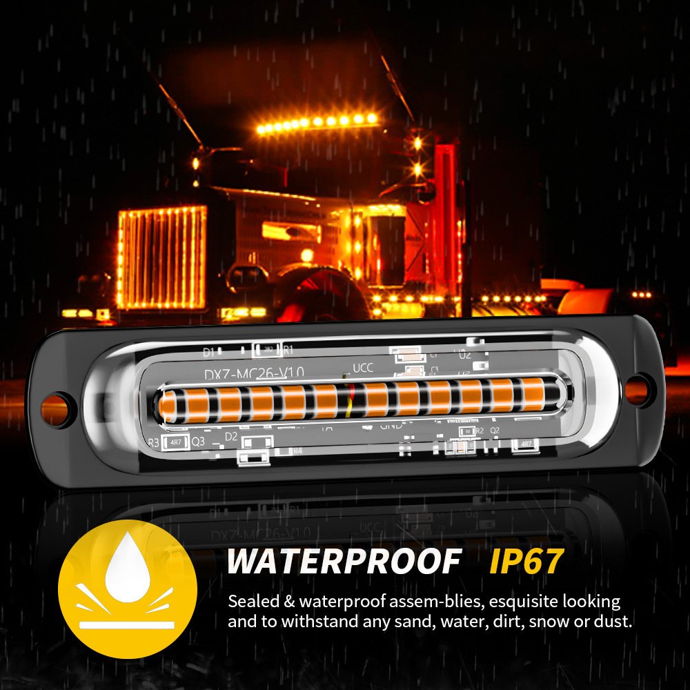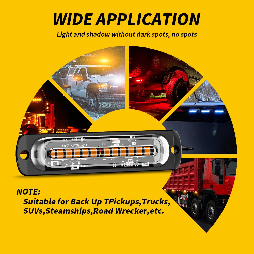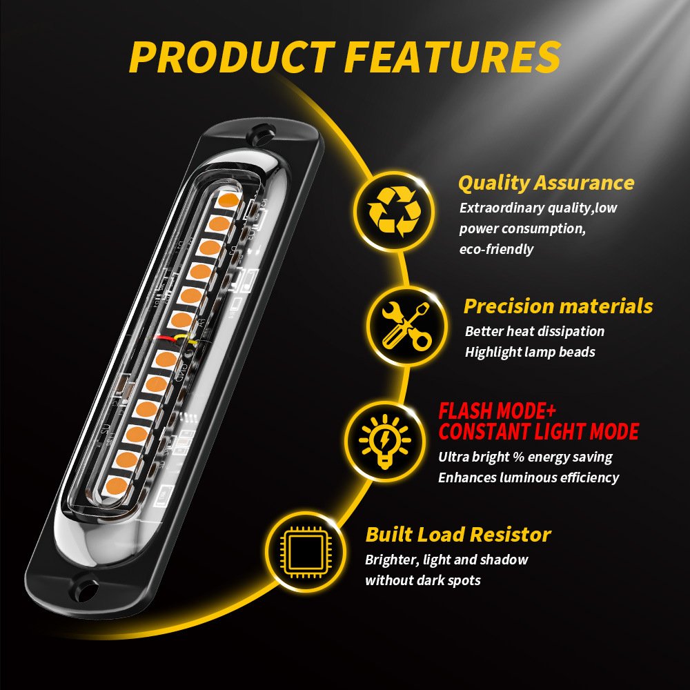 Tenraytech Car Ultra-thin Side Light Signal Warning Light, 12-24V Light Guide 12-LED Pickup Strobe Flashing Light