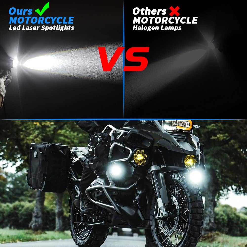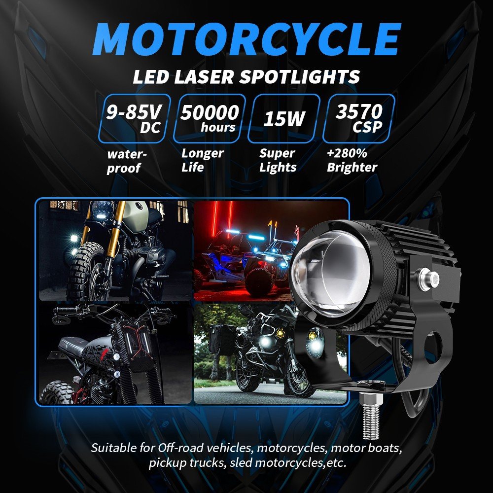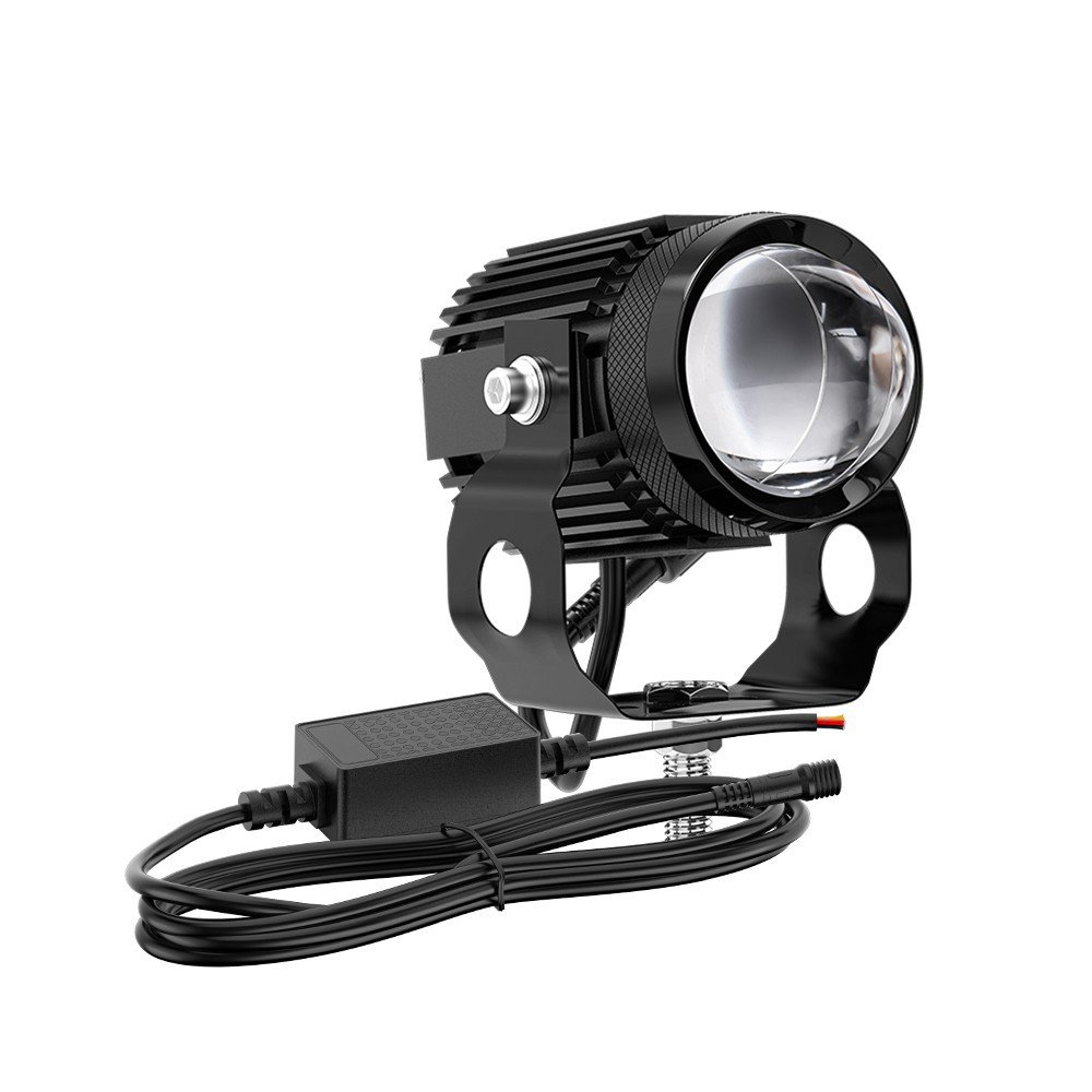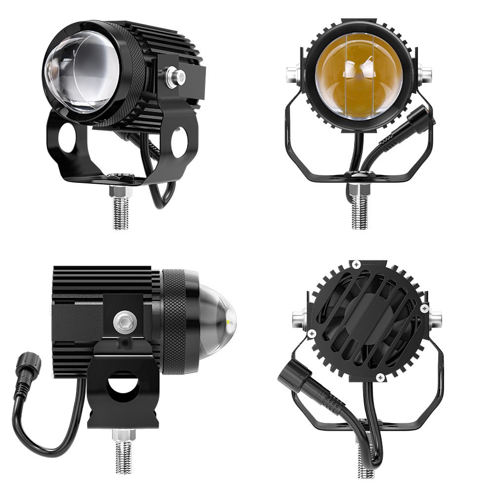 Tenraytech Dual-color Fan-equipped Mini Cannon LED Motorcycle Spotlight, Integrated High/Low Beam Super Bright Road Headlight