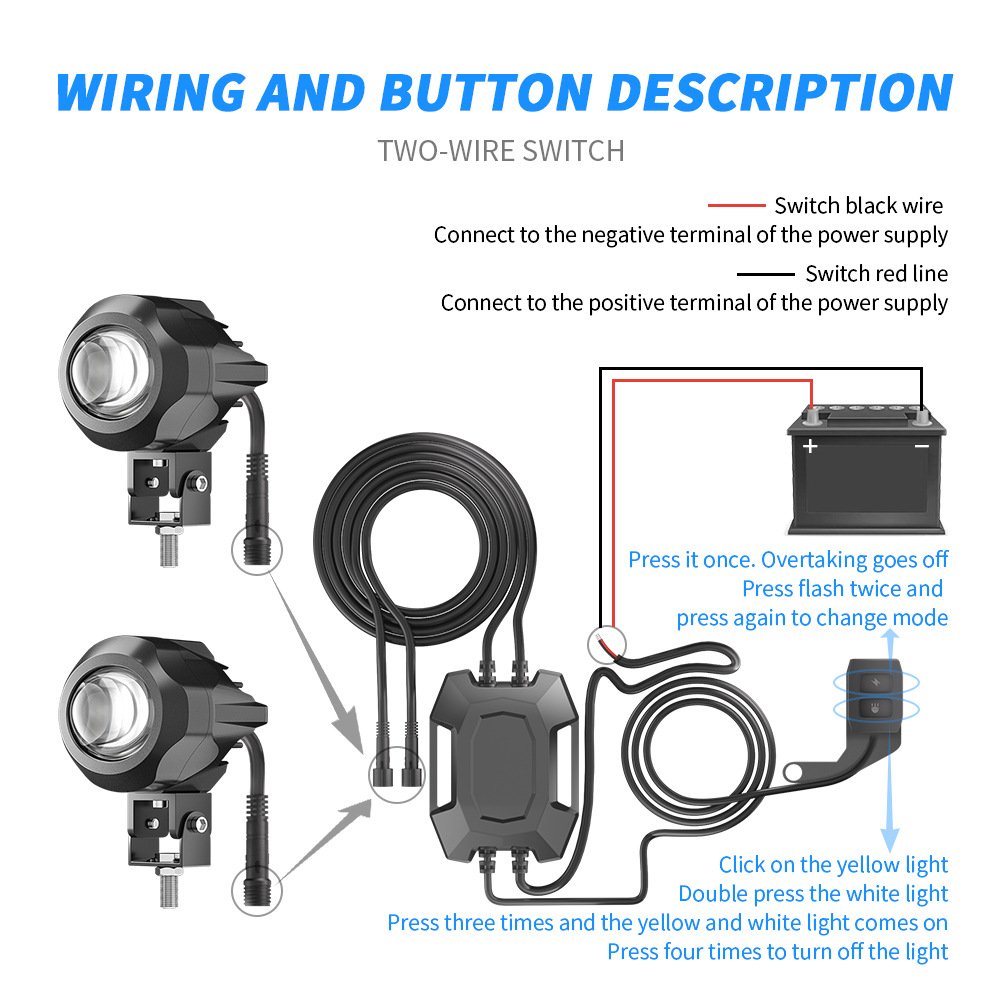 | Light Function & Color | White & Yellow (High-Low Beam + Strobe) |