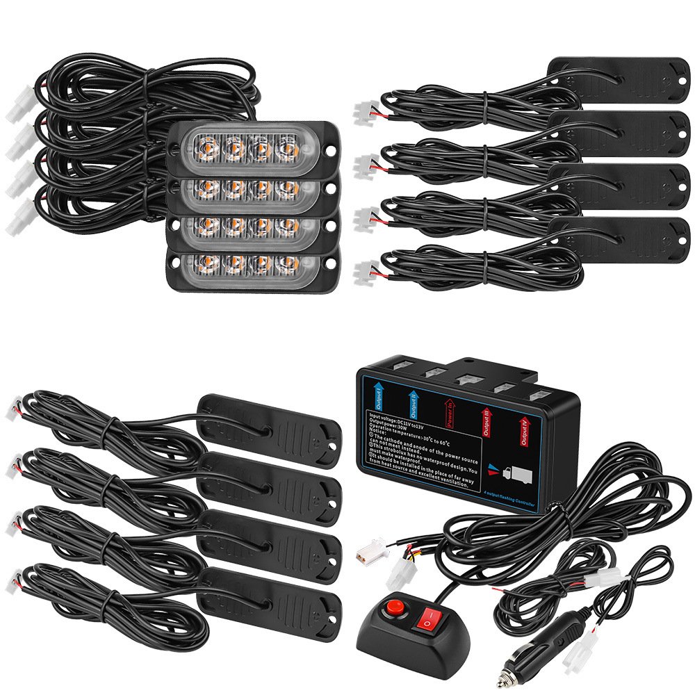 Tenraytech Car Grille Strobe Light, High Power 1 to 4 4LED Clip-on Grille Escort Warning Light