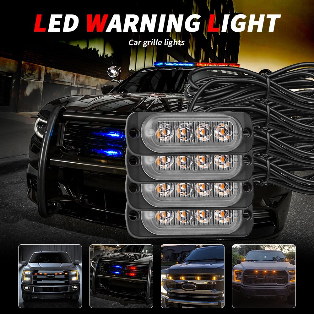 Tenraytech Car Grille Strobe Light, High Power 1 to 4 4LED Clip-on Grille Escort Warning Light