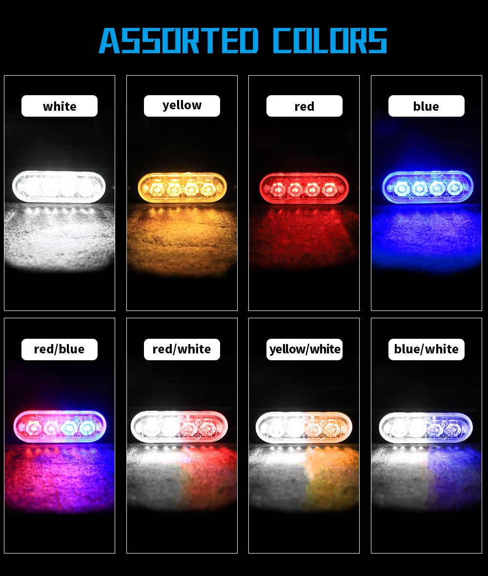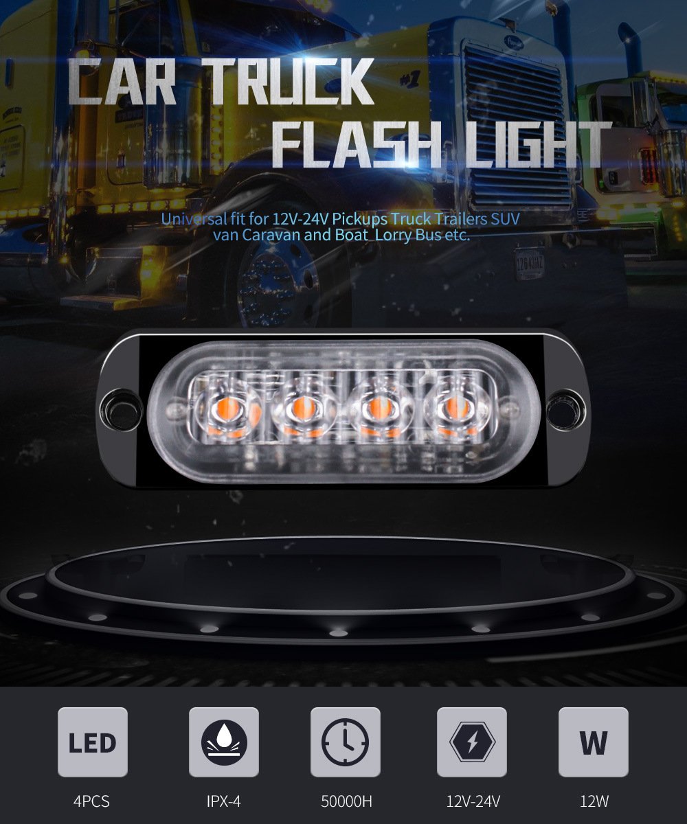 Tenraytech Hot-Selling Truck Warning Light 12-24V, Slim Side 4-LED Strobe Light, Flashing Warning Light 12W
