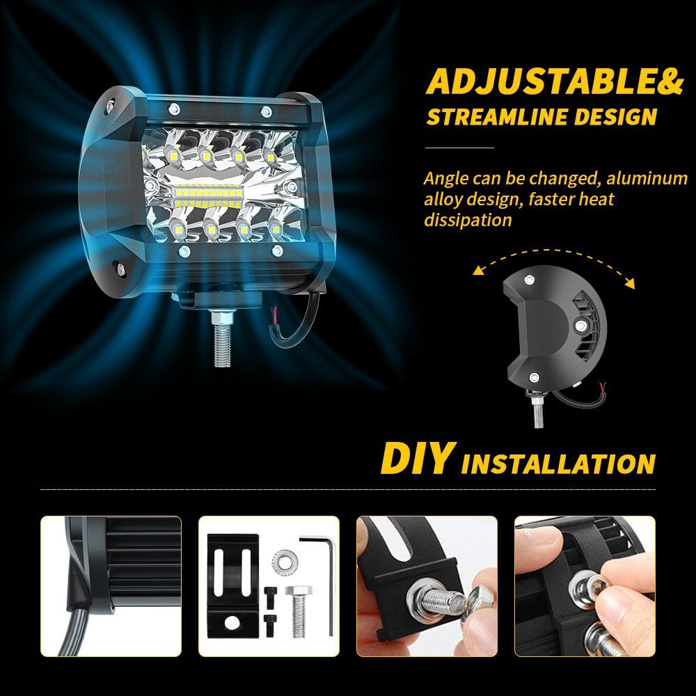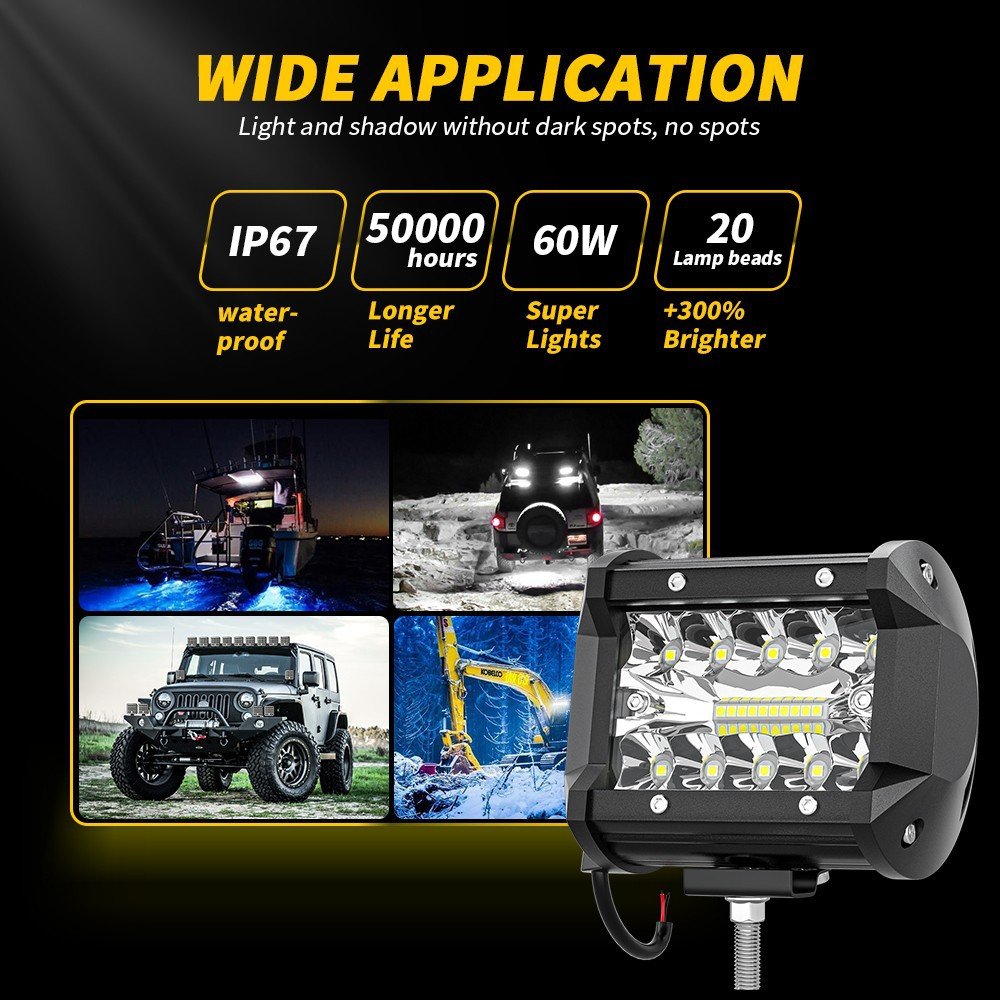 Tenraytech LED Light Bar 60W 4-Inch – Spotlight, Floodlight & Combo Beam Work Light with Wiring Harness Kit