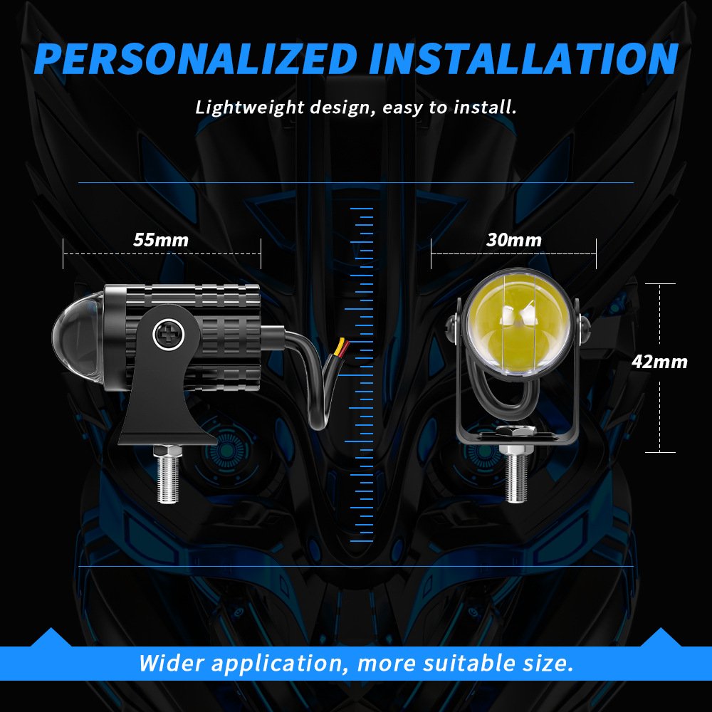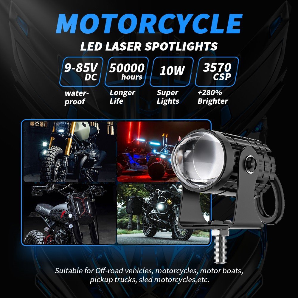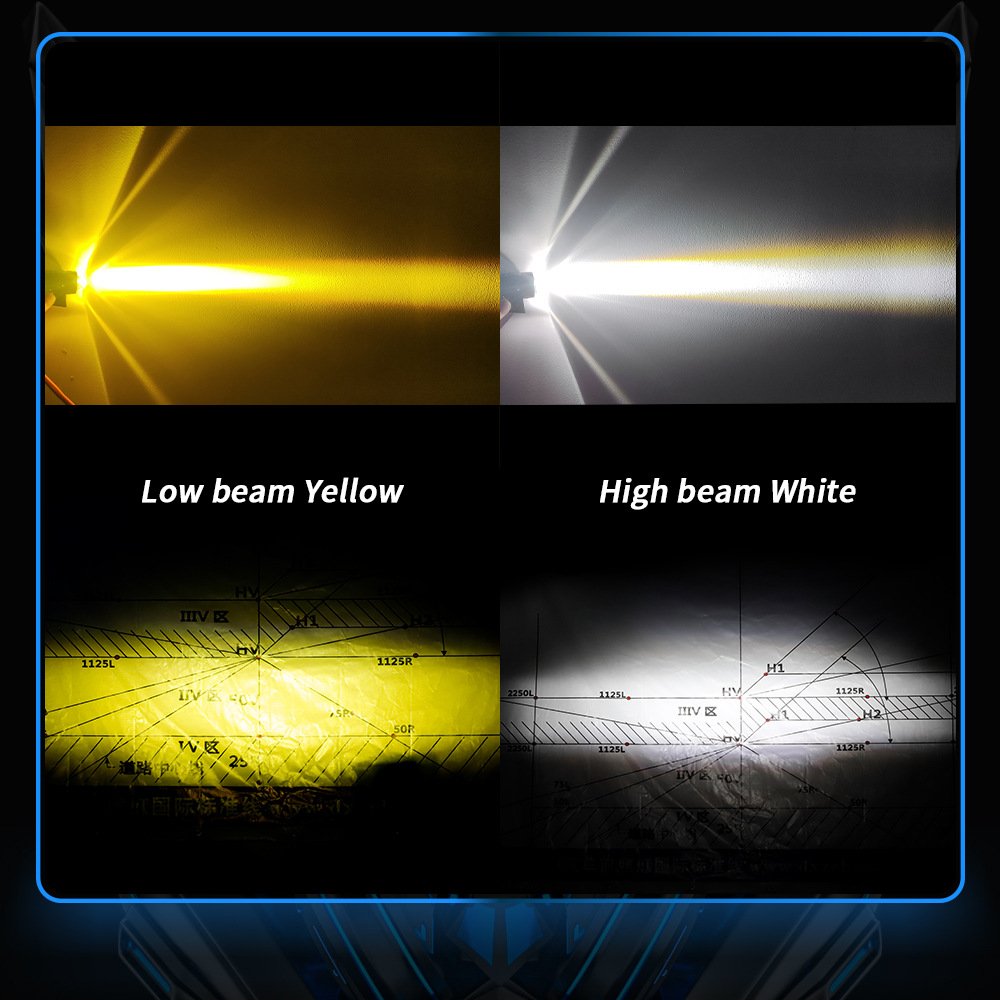 Tenraytech Dual-color Mini Cannon LED Spotlight for Car and Motorcycle, Integrated High/Low Beam Super Bright Road Headlight