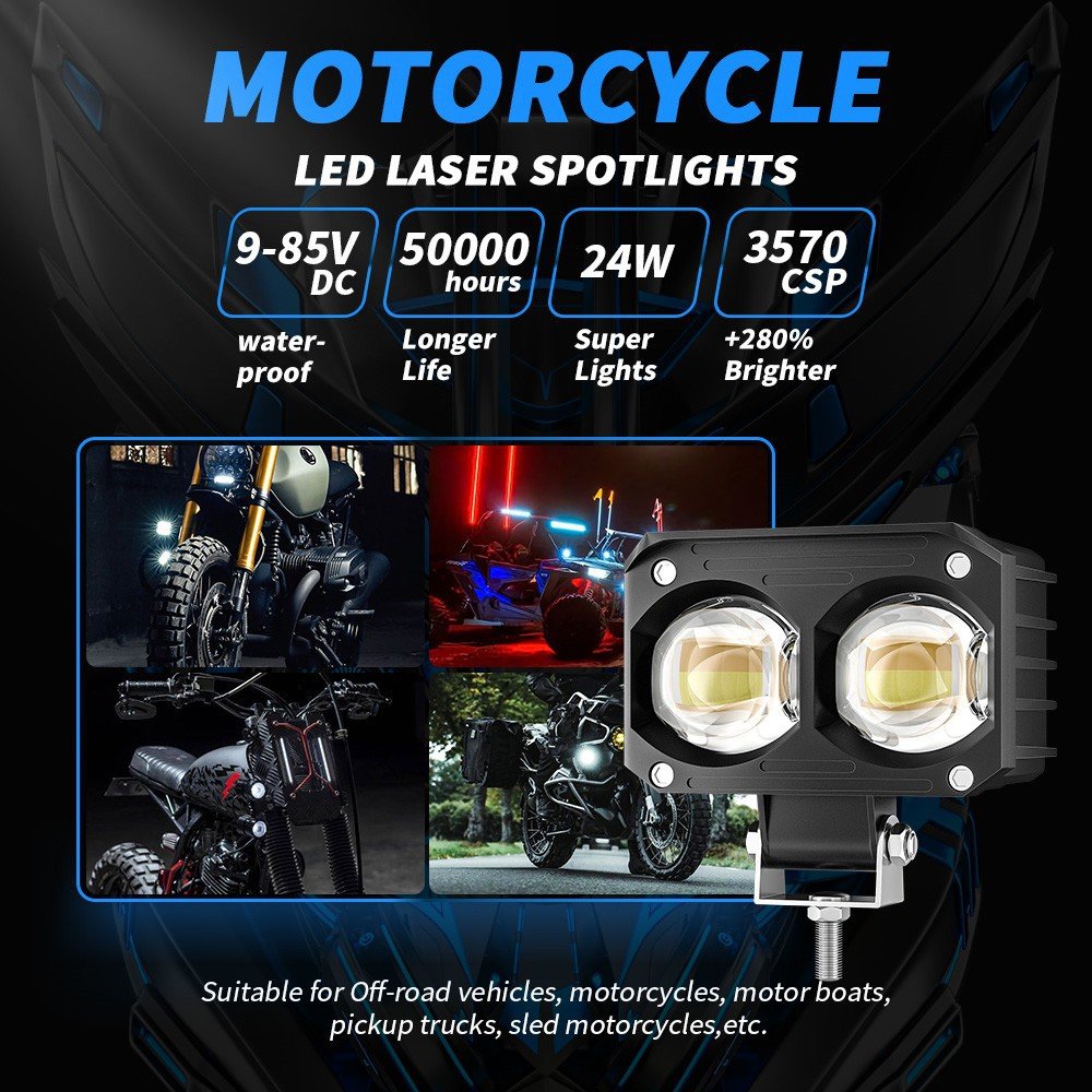 Tenraytech 2-Light 20W Dual-Color Mini Powerhouse External LED Spotlight, 12-80V Retrofit Work Light for Motorcycle & Electric Vehicle