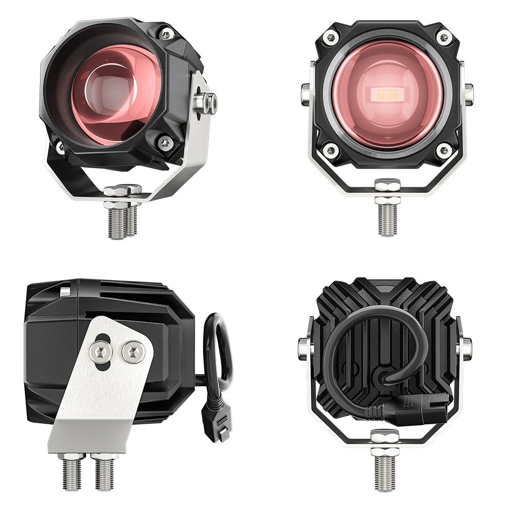 Tenraytech Modified Motorcycle Spotlight Kit, Red Film External Dual-color 5-mode Car LED Work Light