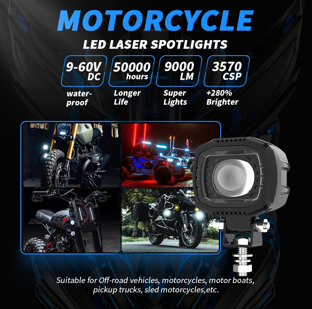 Tenraytech Motorcycle Retrofit Spotlight Kit, External Dual-color LED Work Light with Strobe & High Brightness for Vehicles
