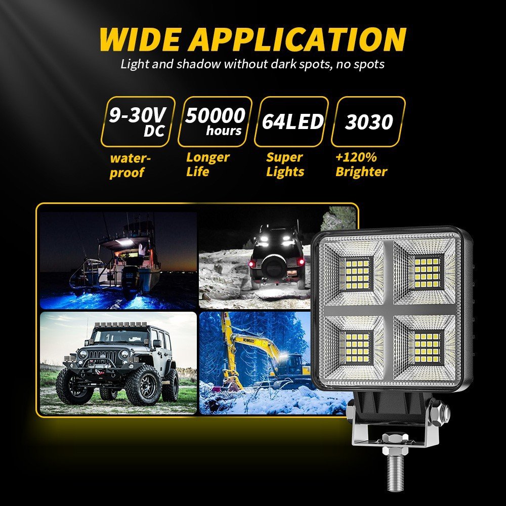 Tenraytech New 4-inch Car LED Work Light, Flood Beam Excavator Light, Engineering Vehicle Light, Drill Vehicle Modified Reverse Light