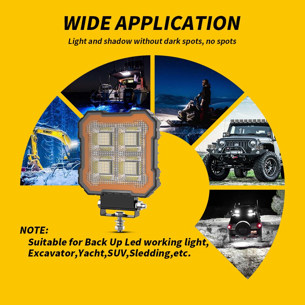 Tenraytech New 4-inch Square Paladin LED Light (Strobe & Steady On) with Halo Ring, Modified Headlight for Engineering & Off-road Vehicles