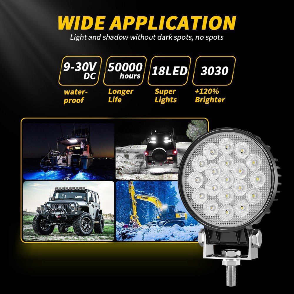 Tenraytech New 4-inch 19-LED Round Automotive Work Light – Forklift Lamp, Engineering Lighting Flood Light & Vehicle Searchlight