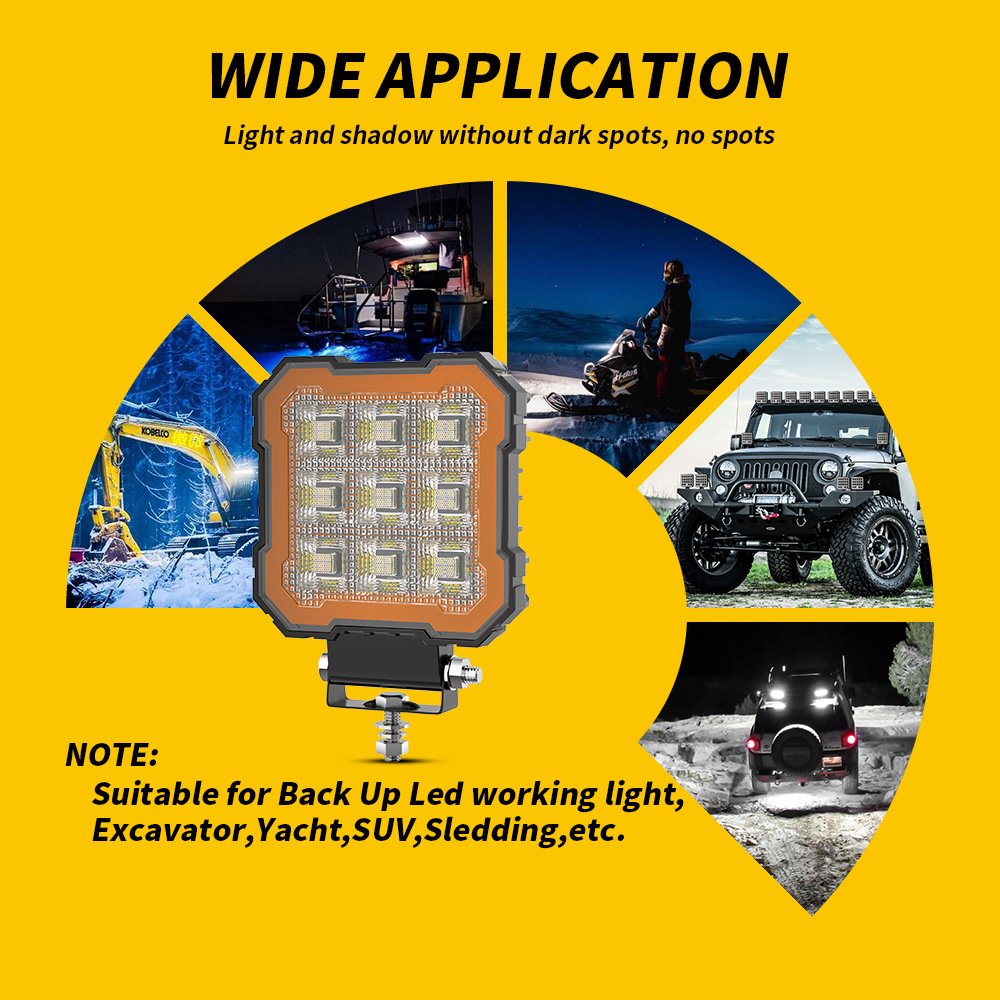Tenraytech New Cross-border 4-inch Square Paladin LED Light – Strobe & Steady On with Halo Ring, Modified Headlight for Engineering & Off-road Vehicles