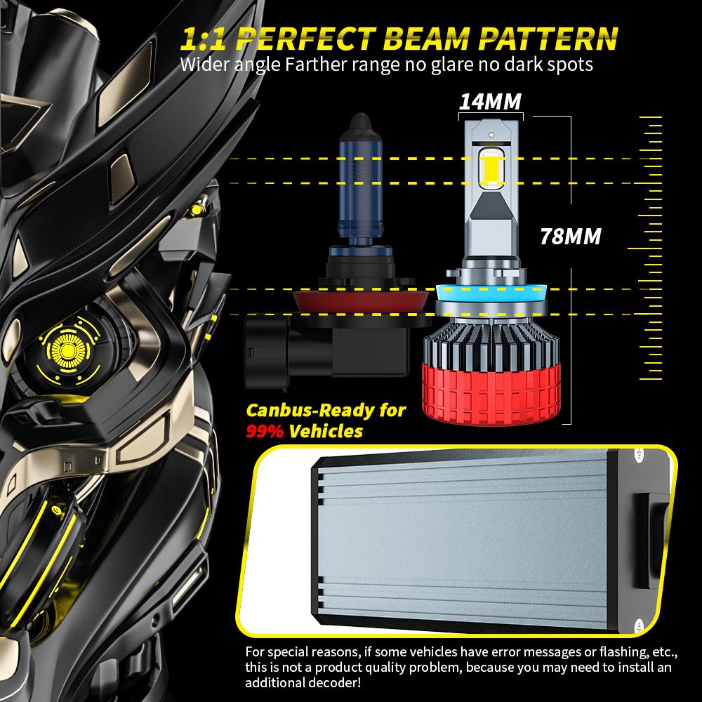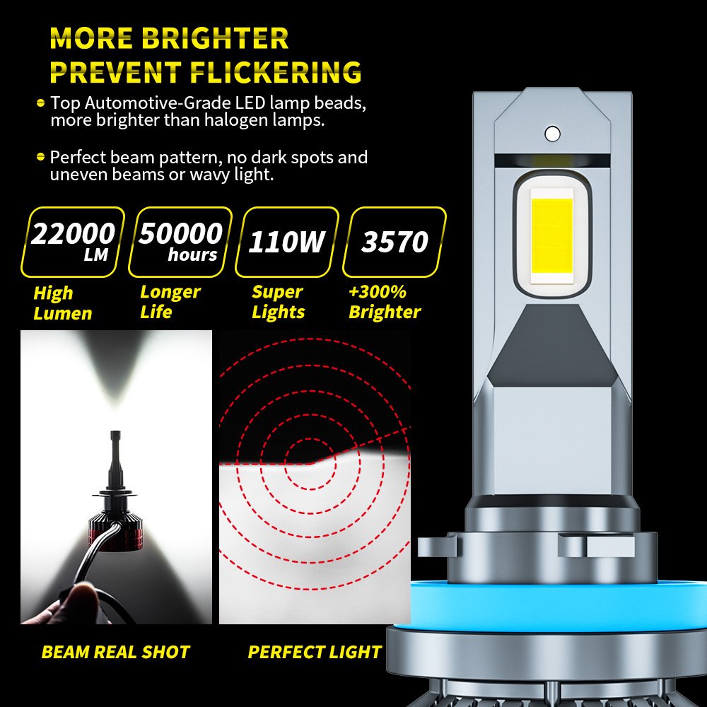 Tenraytech New D4 110W High-Power LED Car Headlight, Universal for H4/H7/9005 Headlamps