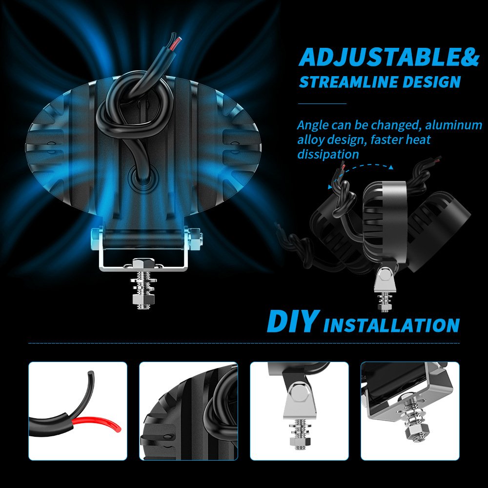 Tenraytech New Mini Oval 8-LED Work Light, Modified Spot Beam Light for Trucks, Engineering Maintenance, and Off-road Auxiliary Use
