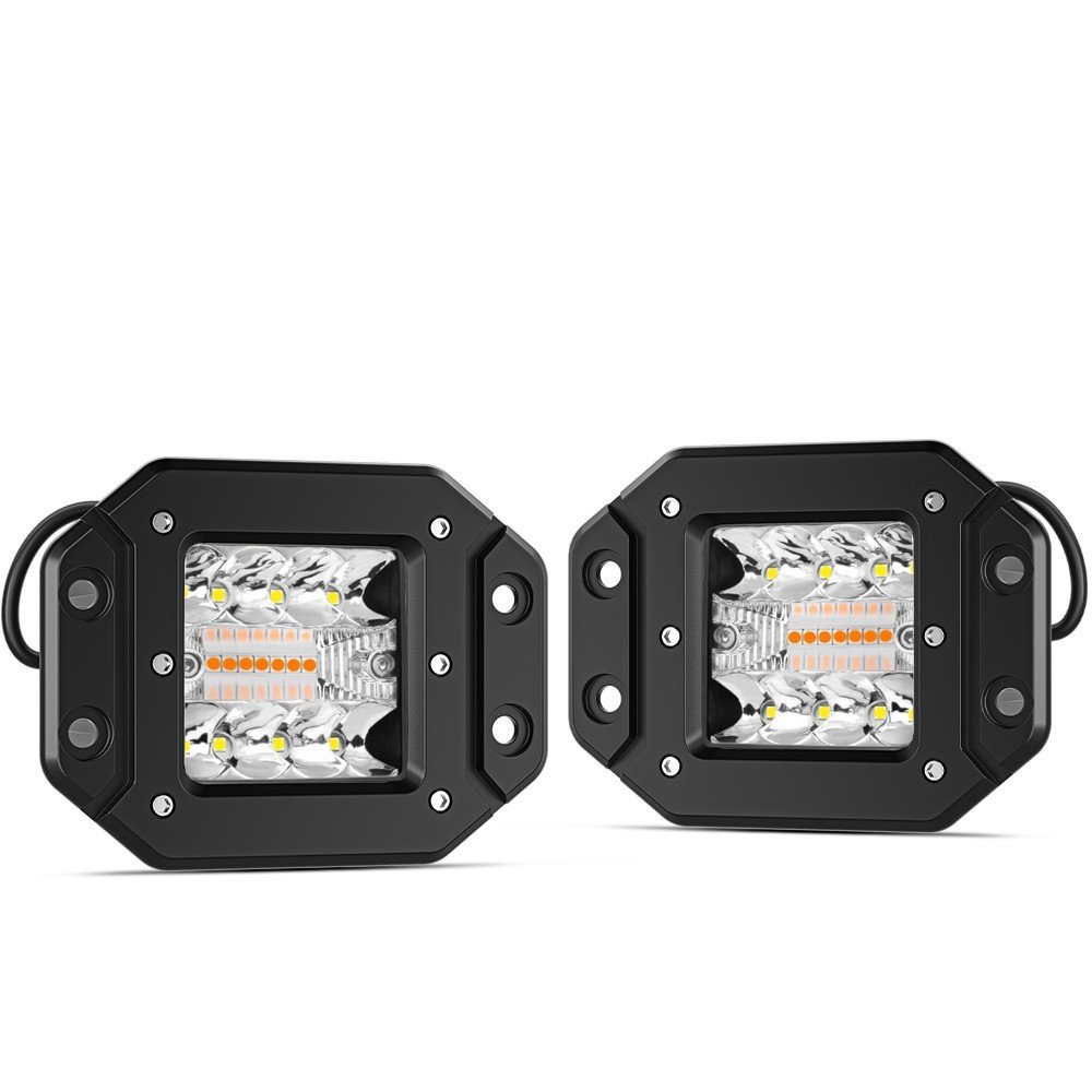 Tenraytech Recessed Fog Light Automotive LED Work Light – White & Amber Dual-Color 6 Modes Off-Road Driving Spot Light Kit