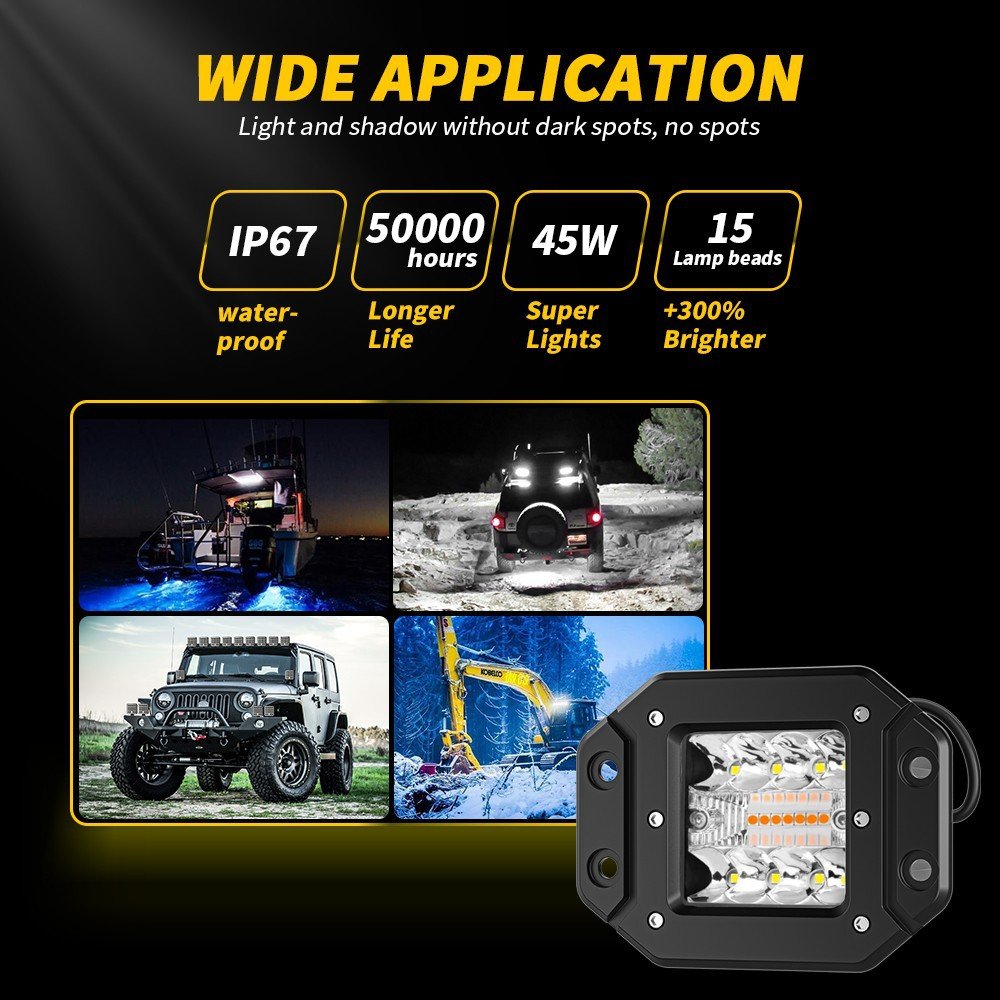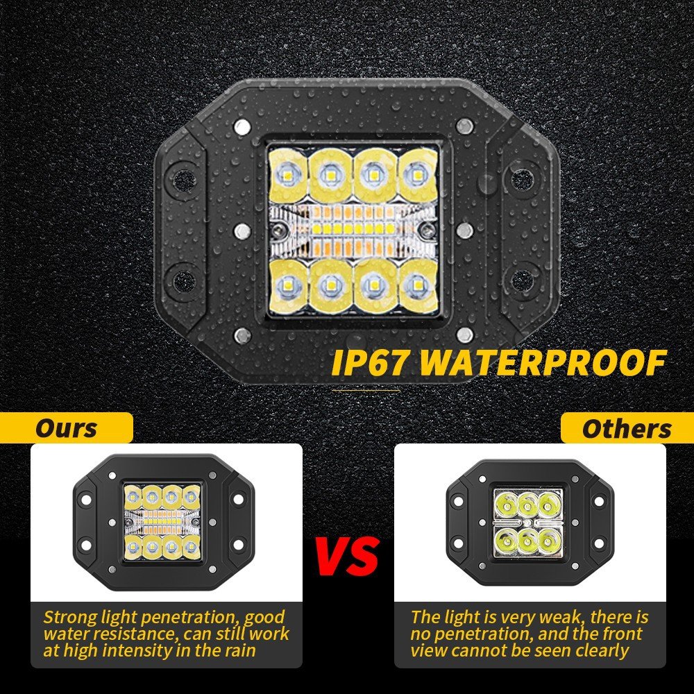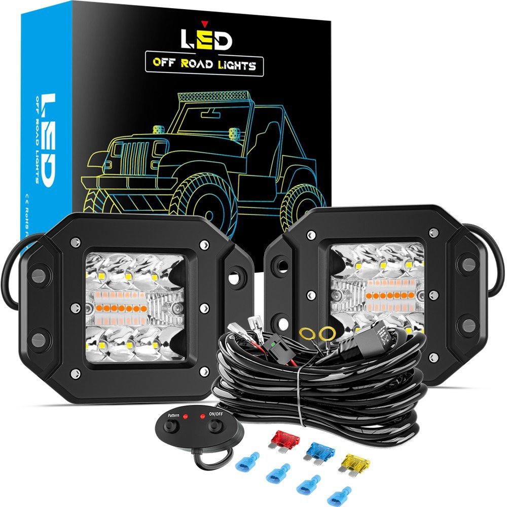 Tenraytech Recessed Fog Light Automotive LED Work Light – White & Amber Dual-Color 6 Modes Off-Road Driving Spot Light Kit
