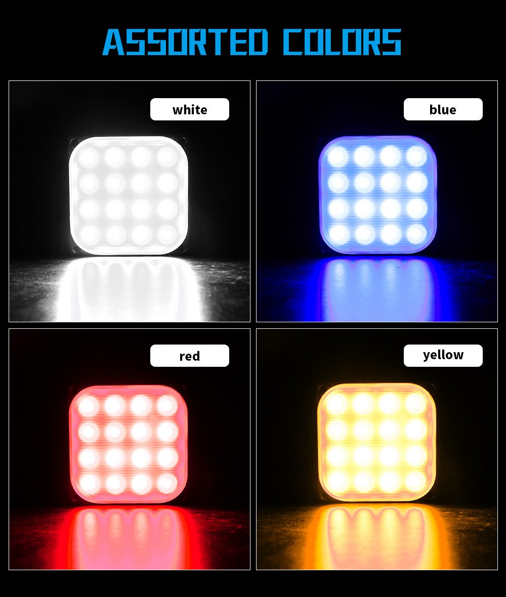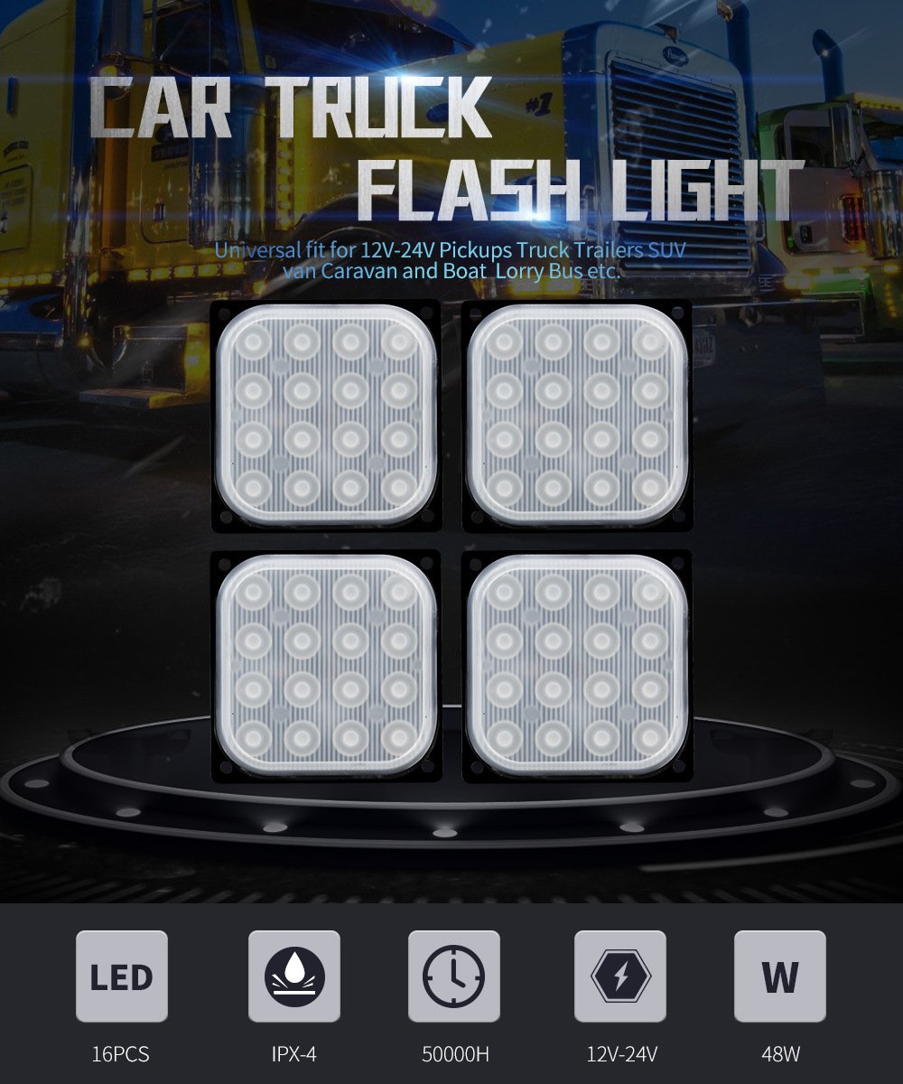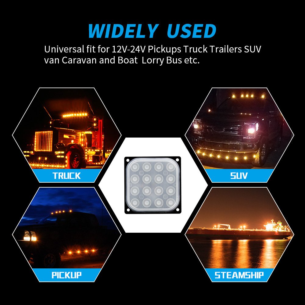 Tenraytech Square Ultra-thin 16-LED Side Warning Light, Strobe Flashing Light, Yellow Signal Light, Truck Tail Light