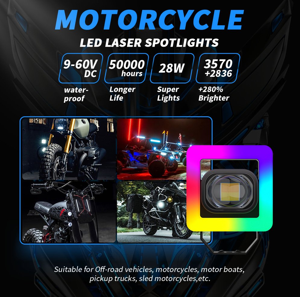 Tenraytech Stylish Yellow-White Dual-color LED Auxiliary Lamp, RGB Motorcycle Headlight
