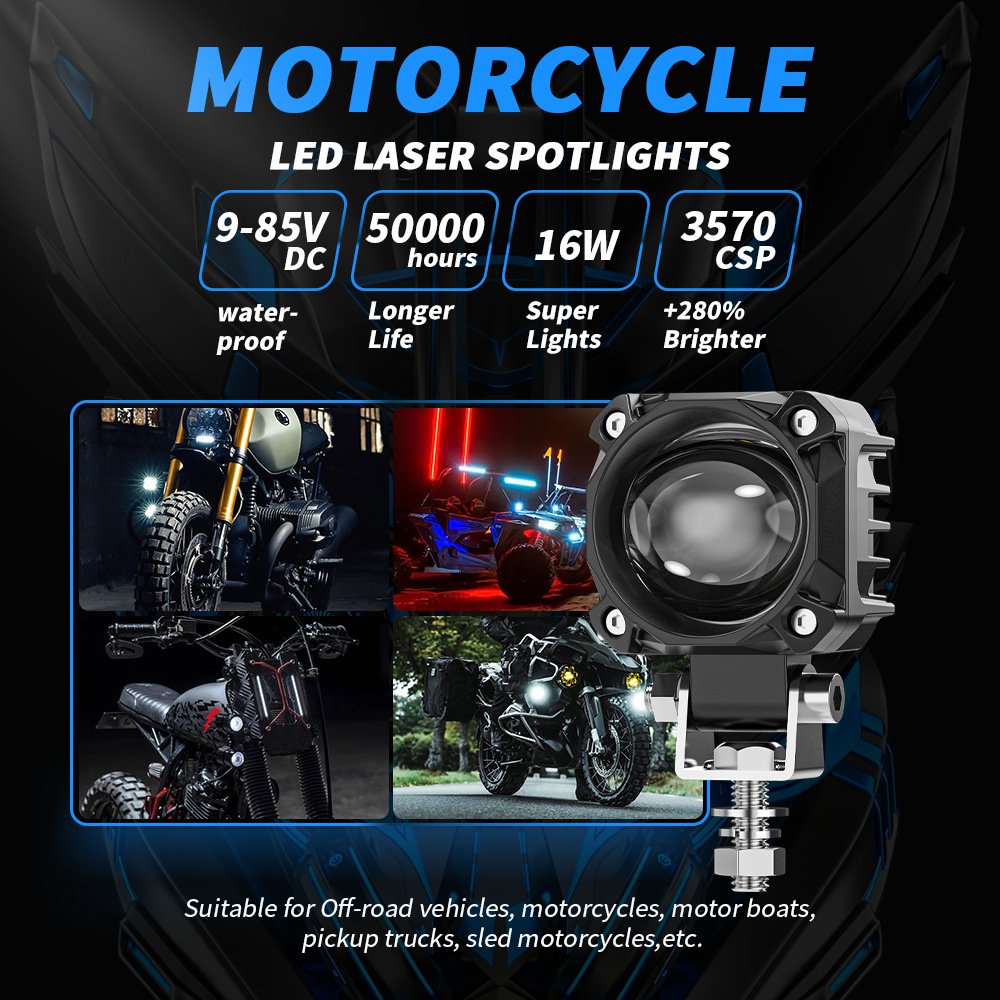 Tenraytech Super Bright Dual-beam LED Spotlight for Motorcycle and Electric Vehicle, Modified External Headlight, High/Low Beam Road Lamp
