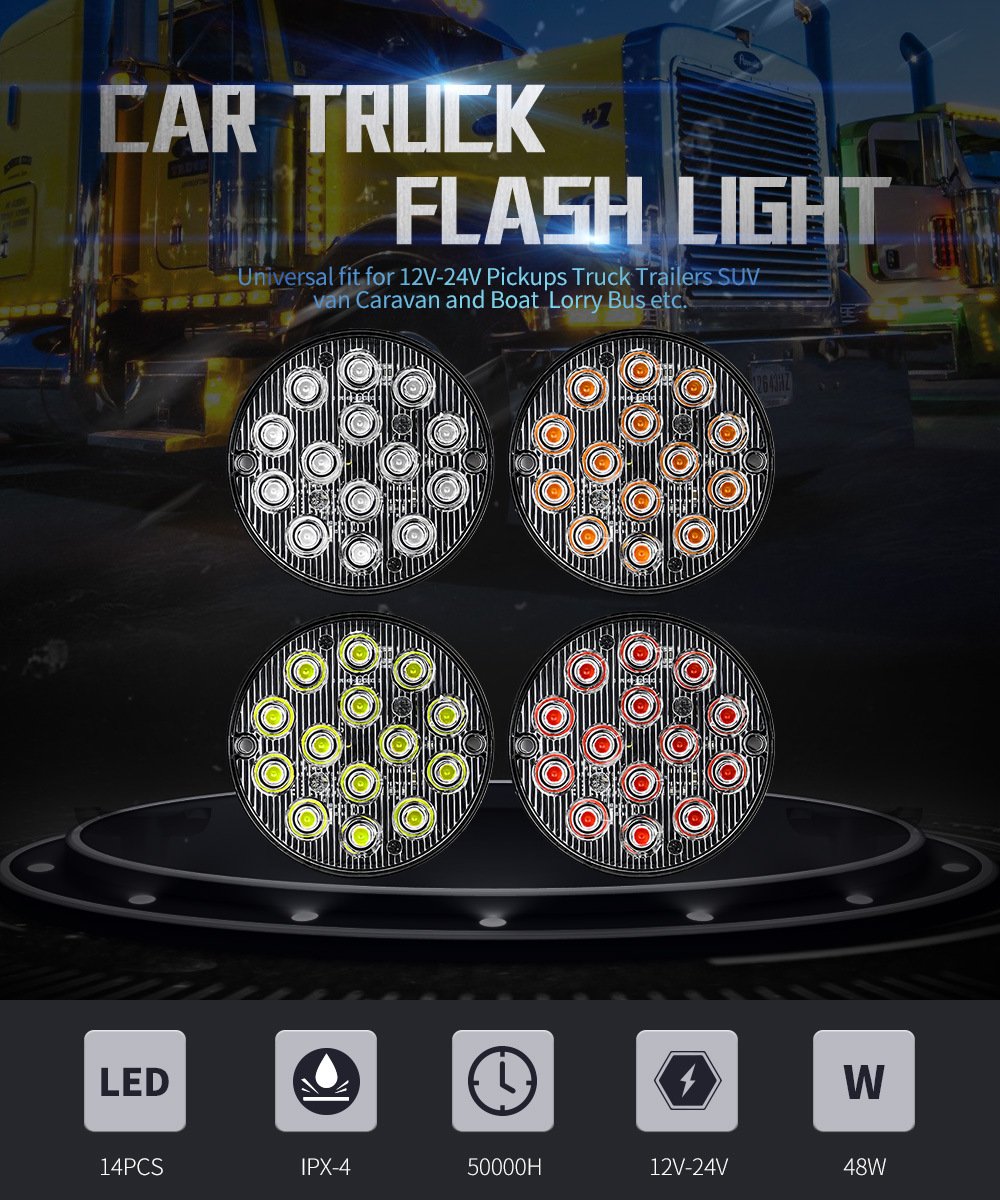 Tenraytech Ultra – thin Round 14 – LED Side Strobe Warning Light, Vehicle LED Signal Tail Driving Lamp for Car Modification