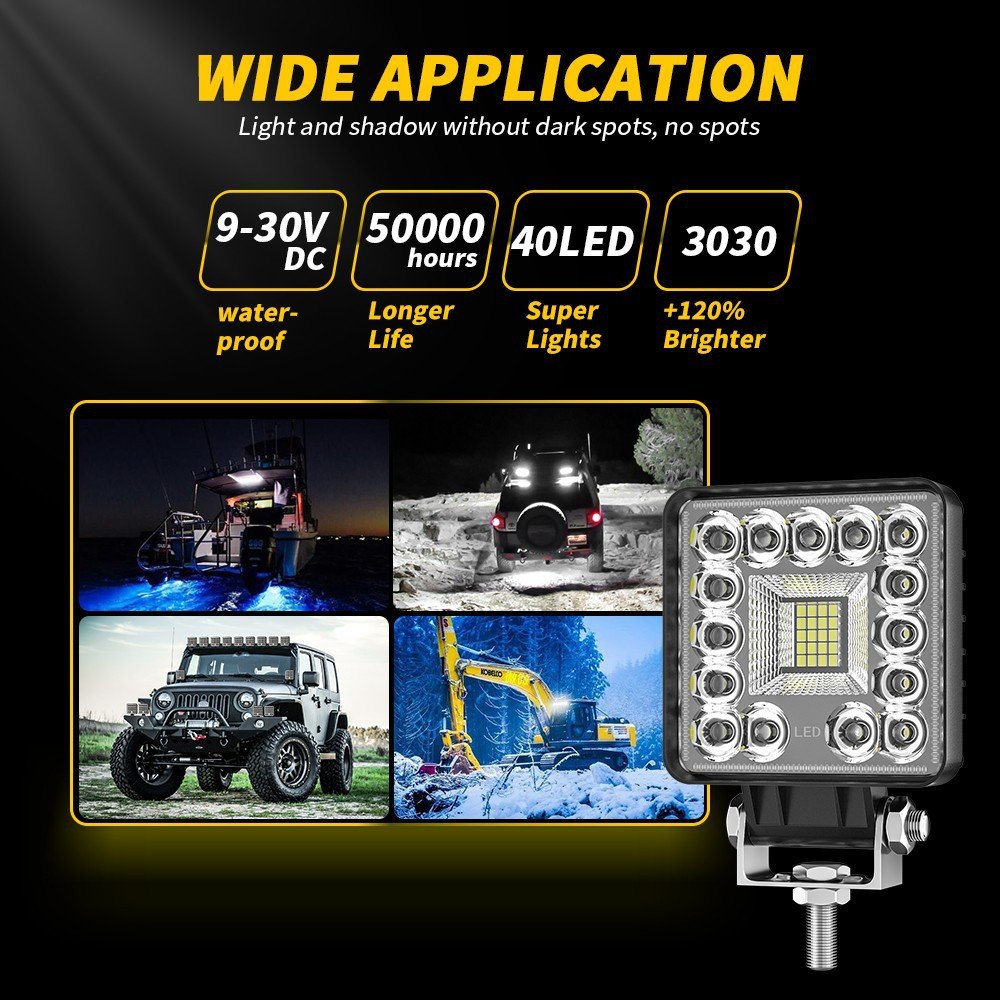 Tenraytech Work Light Manufacturer High Brightness 4-inch Square LED Work Light and Searchlight for Off-road Vehicle, Truck and Car Modification