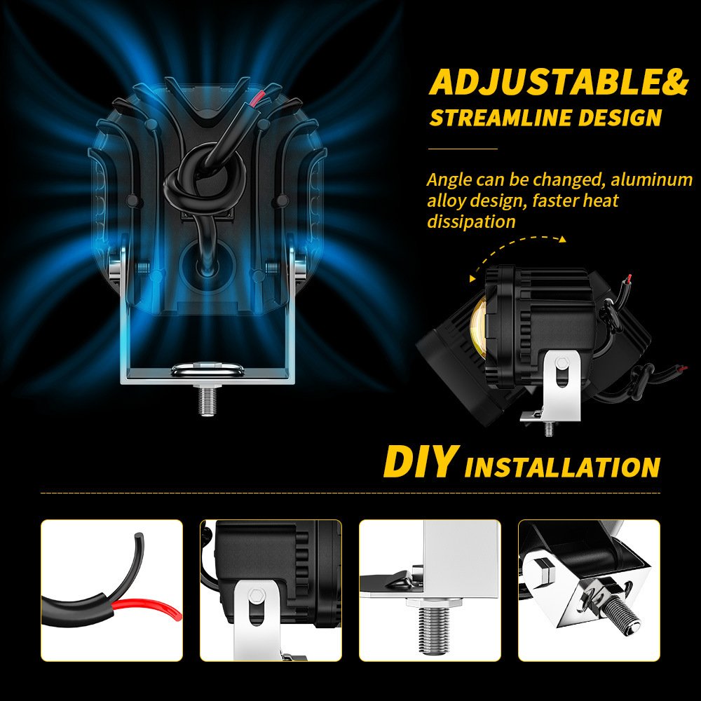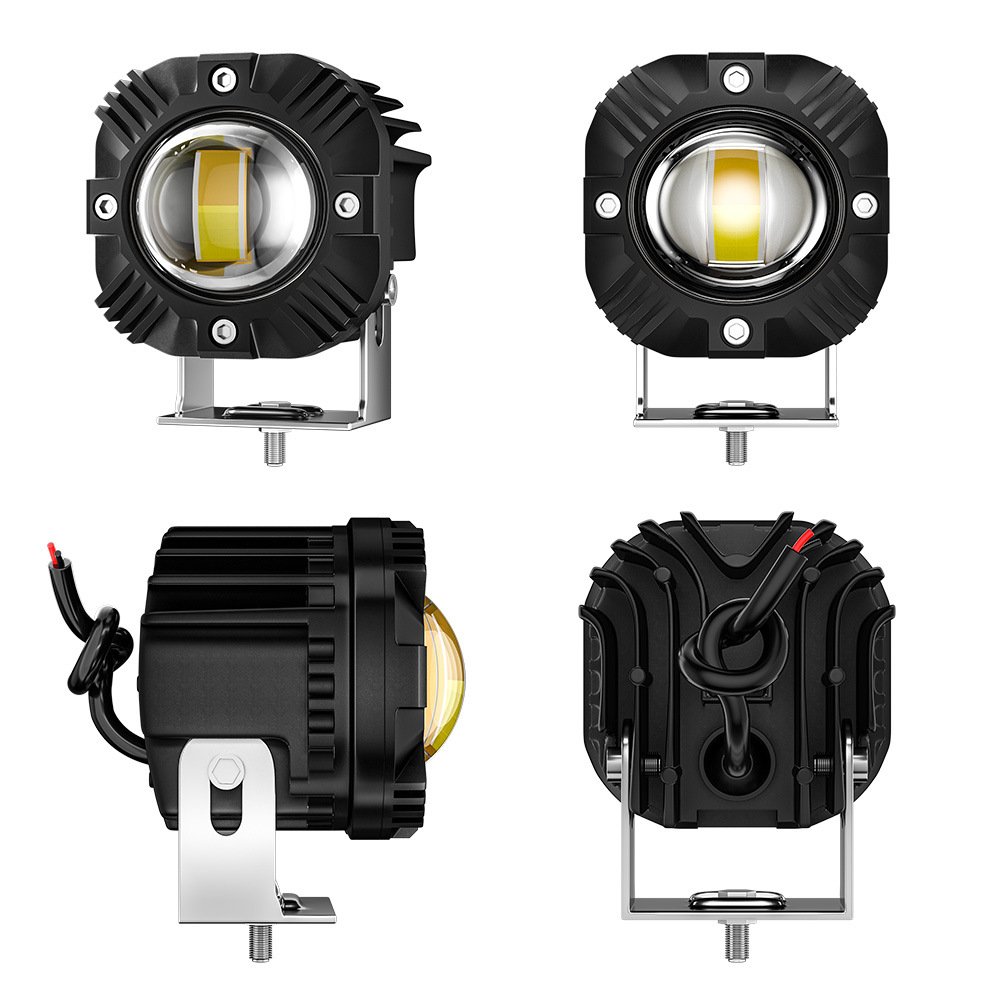 Tenraytech Yellow-White Dual-color Motorcycle Spotlight, 30W High-brightness LED Laser Cannon with Lens, High/Low Beam Road Lamp